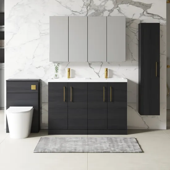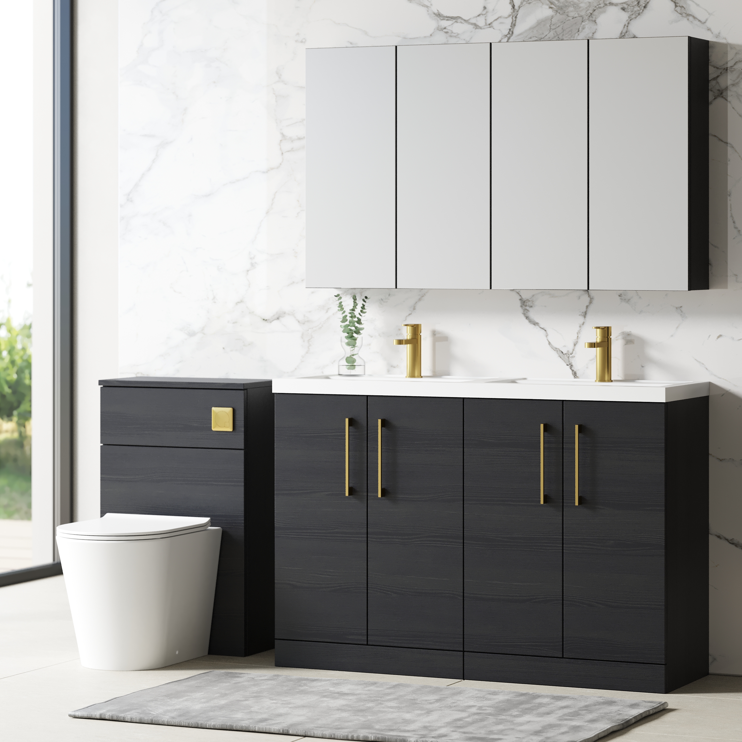 Nuie Arno 1200mm Floor Standing 4 Door Vanity & Double Basin 1 - Black Woodgrain