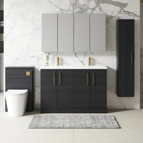 Nuie Arno 1200mm Floor Standing 4 Door Vanity & Double Basin 2 - Black Woodgrain