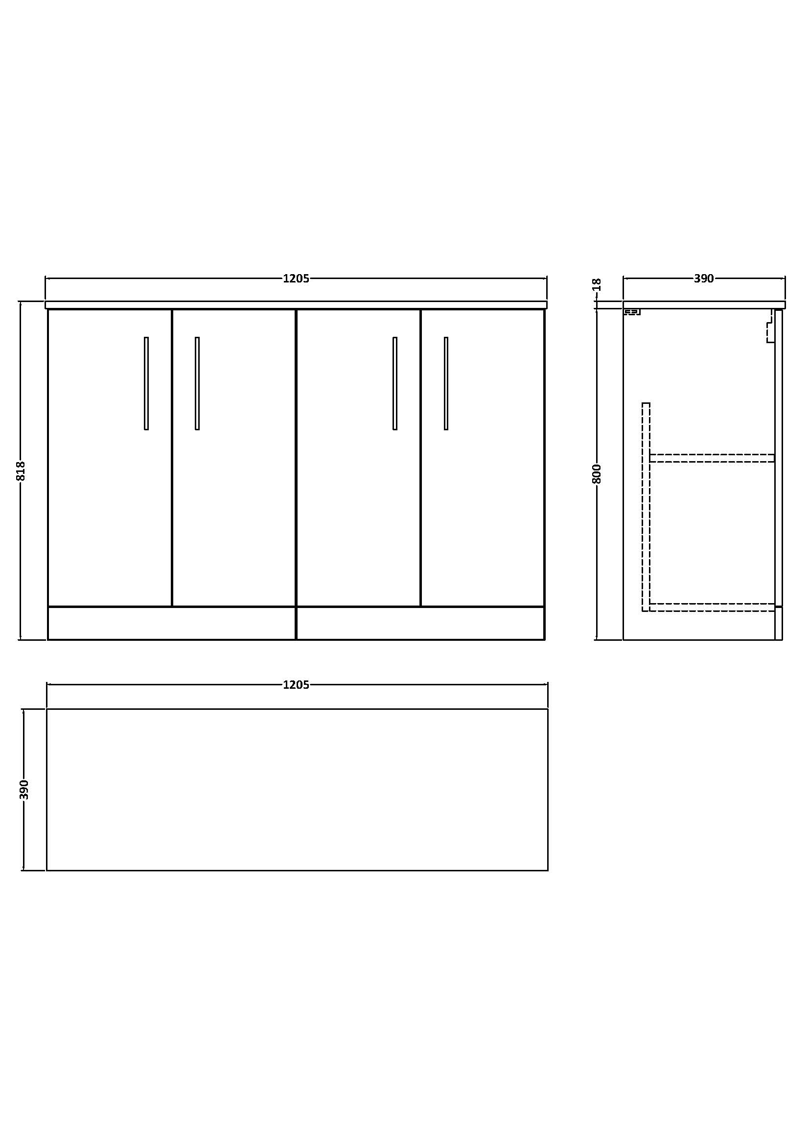 Arno 1200mm Floor Standing 4 Door Vanity & Worktop
