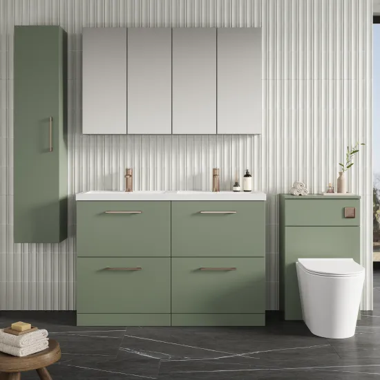 Nuie Arno 1200mm Floor Standing 4 Drawer Vanity & Double Basin 1 - Satin Green