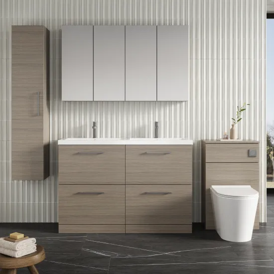 Nuie Arno 1200mm Floor Standing 4 Drawer Vanity & Double Basin 2 - Grey Vicenza Oak