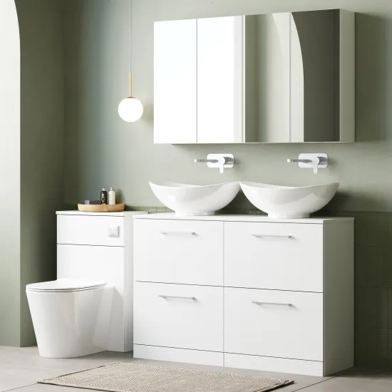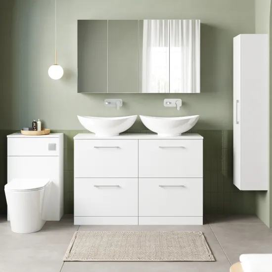 Nuie Arno 1200mm Floor Standing 4 Drawer Vanity & Worktop - Gloss White