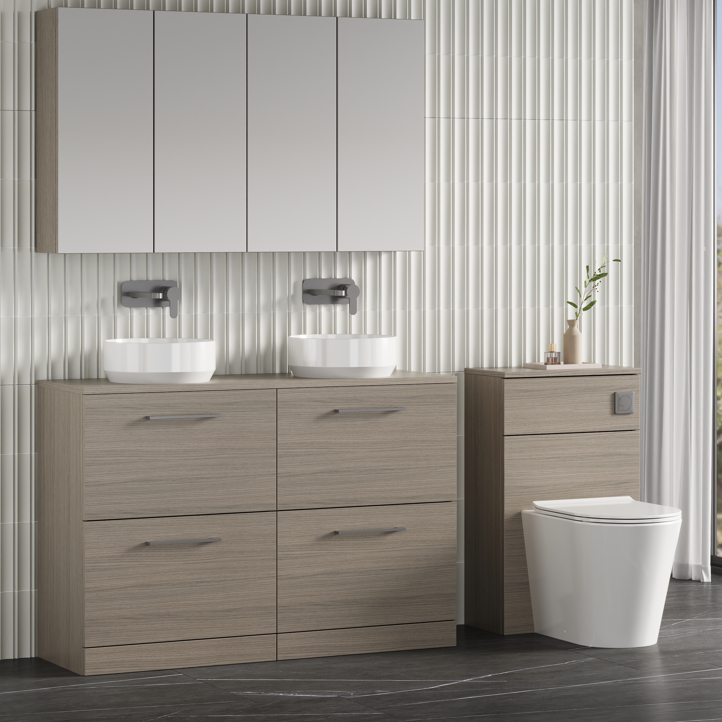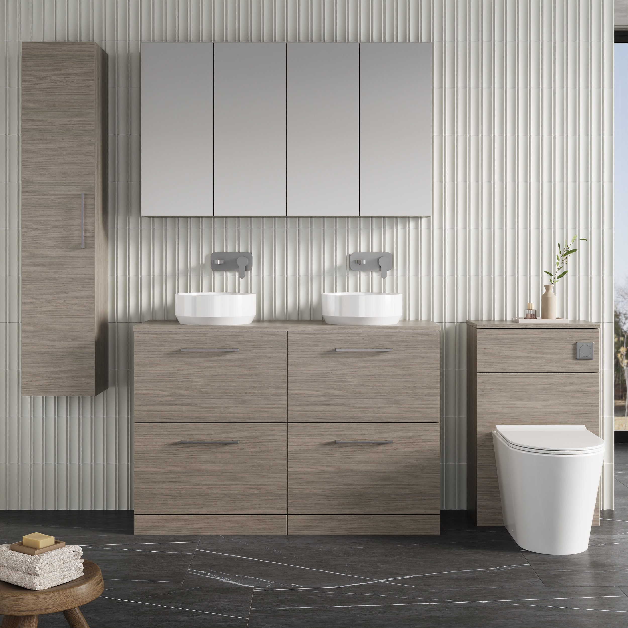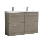 Nuie Arno 1200mm Floor Standing 4 Drawer Vanity & Worktop - Grey Vicenza Oak