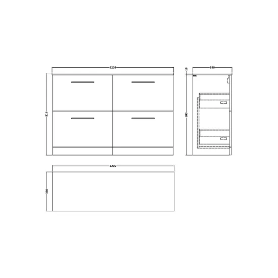Arno 1200mm Floor Standing 4 Drawer Vanity & Worktop