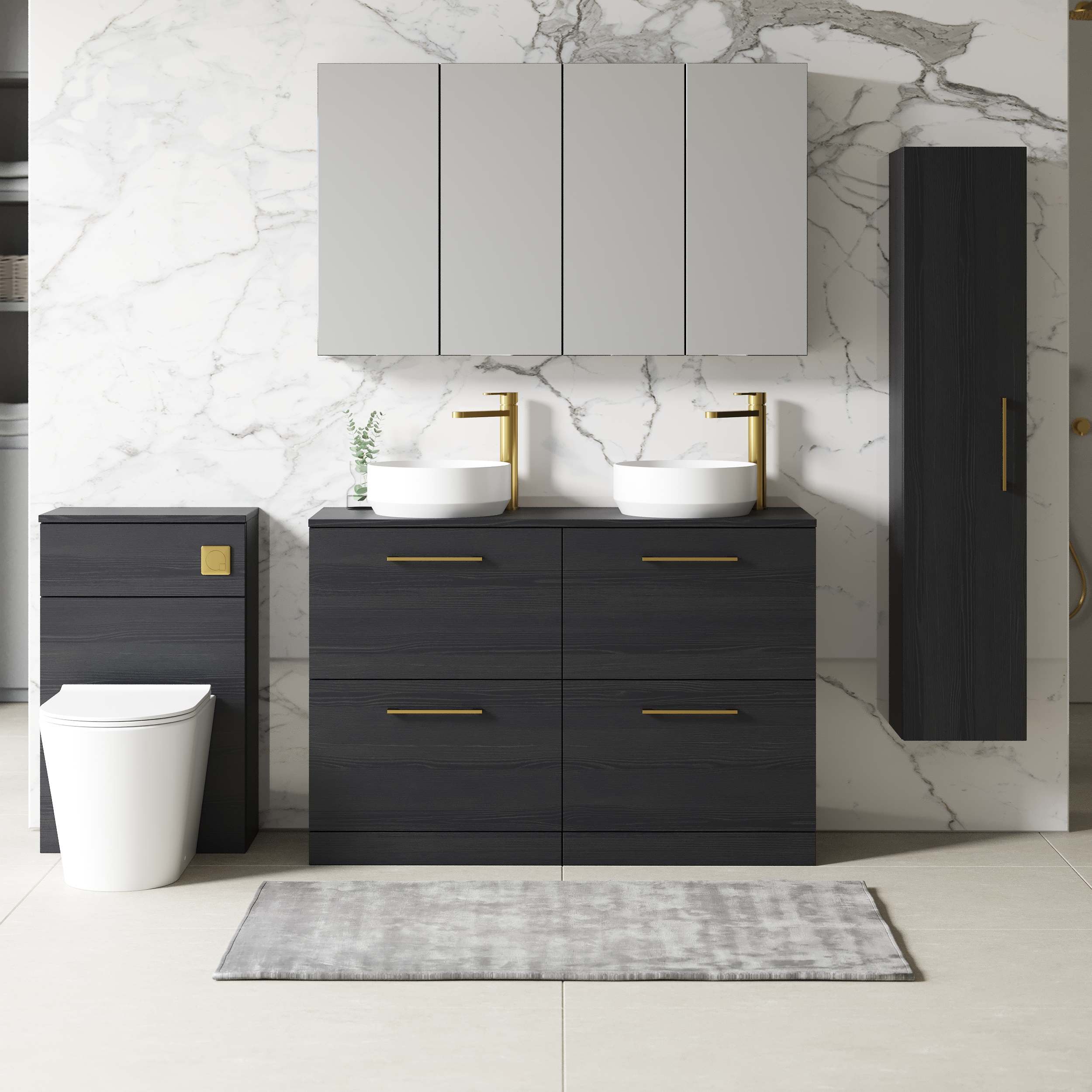 Nuie Arno 1200mm Floor Standing 4 Drawer Vanity & Worktop - Black Woodgrain