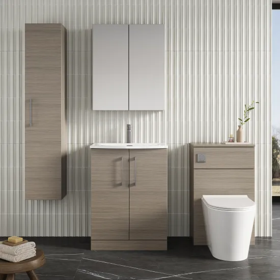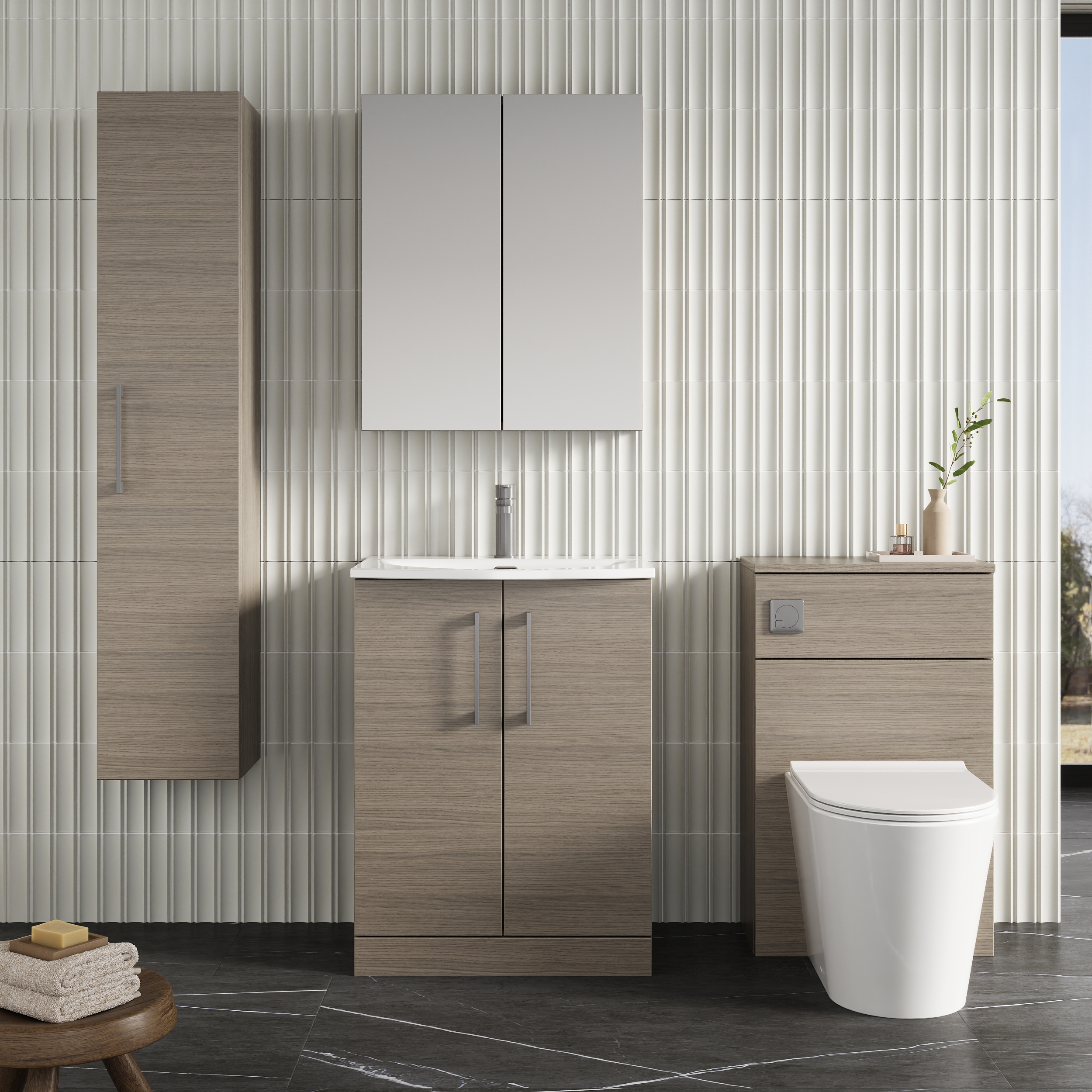 nuie Arno 600mm Floor Standing 2-Door Vanity & Curved Basin - Solace Oak
