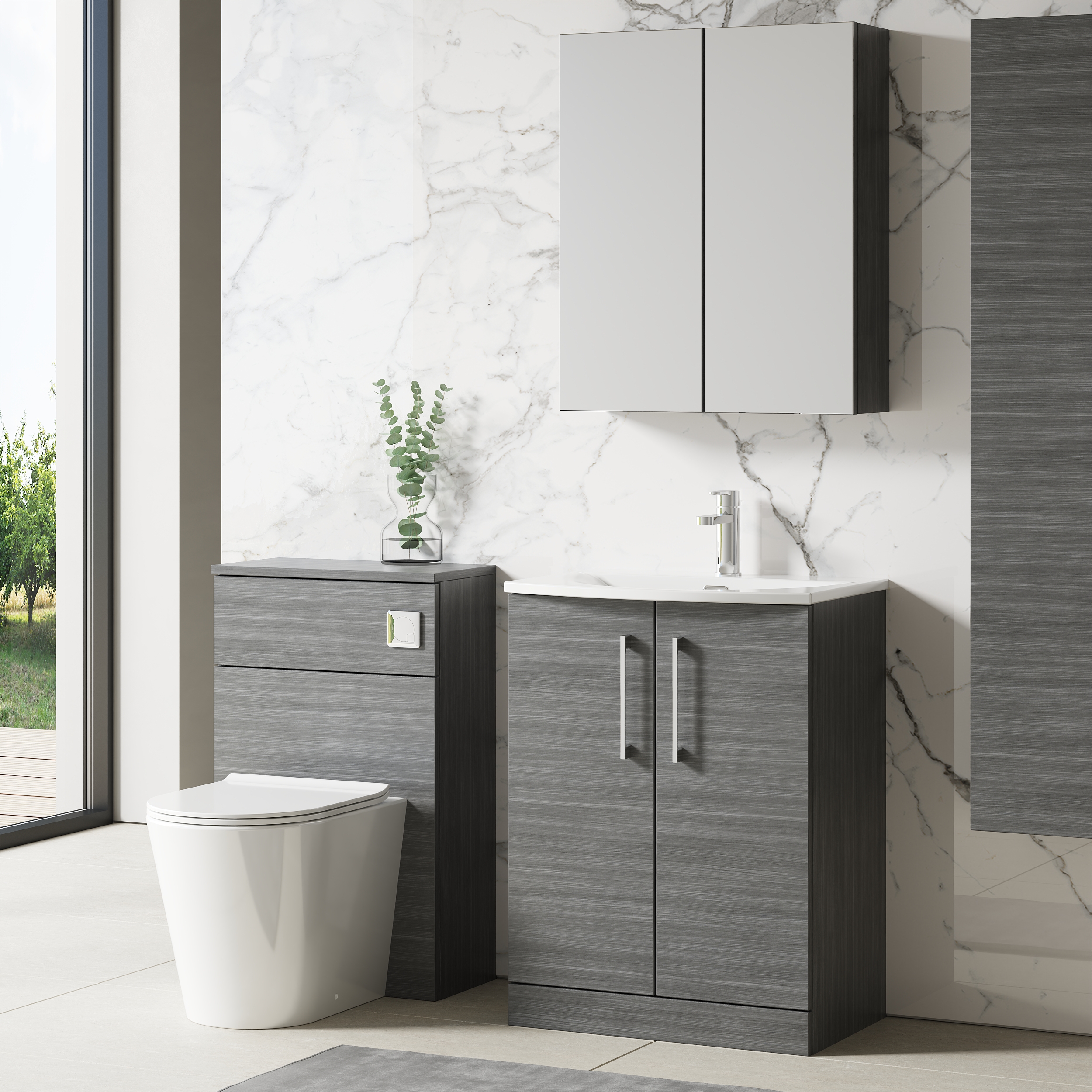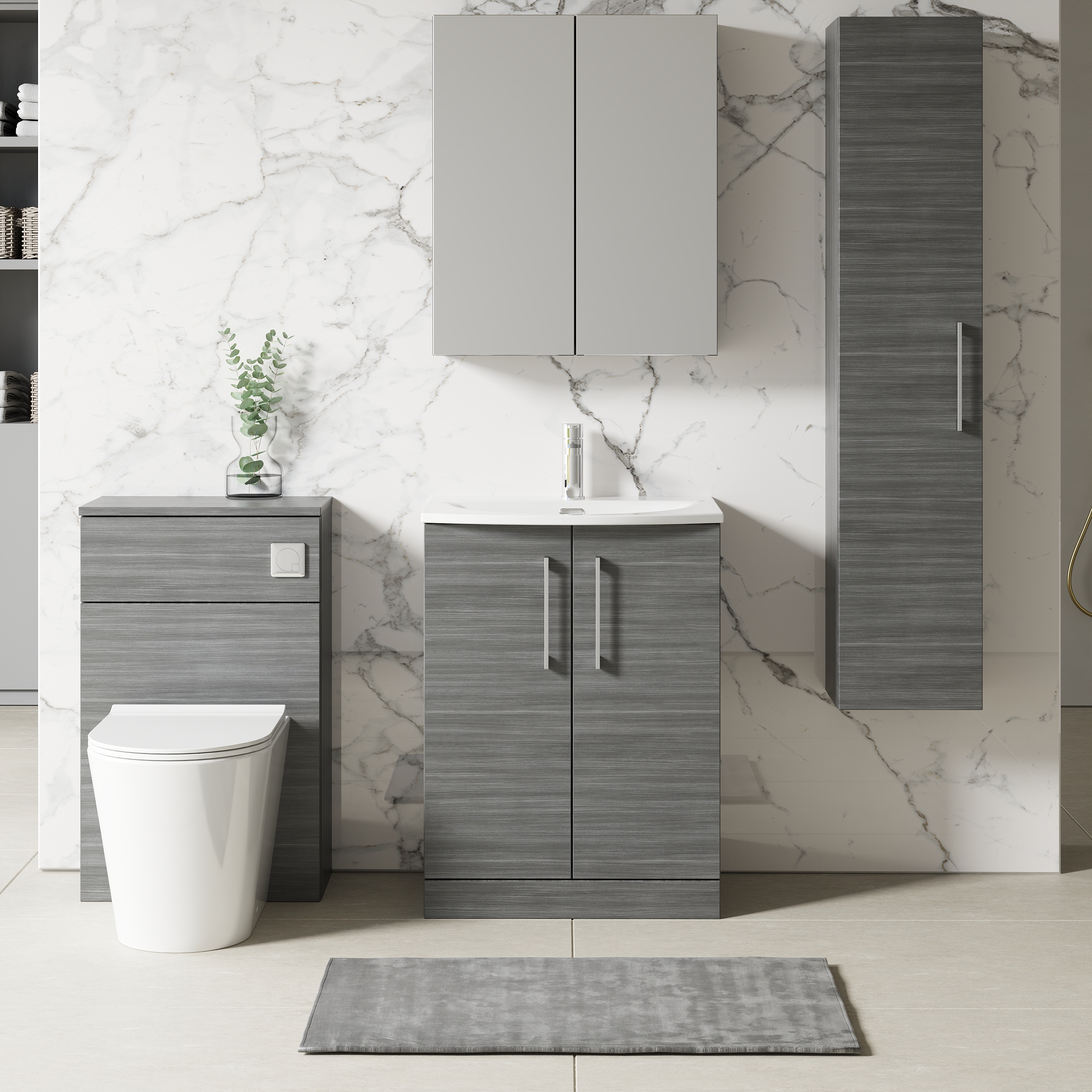 nuie Arno 600mm Floor Standing 2-Door Vanity & Curved Basin - Anthracite