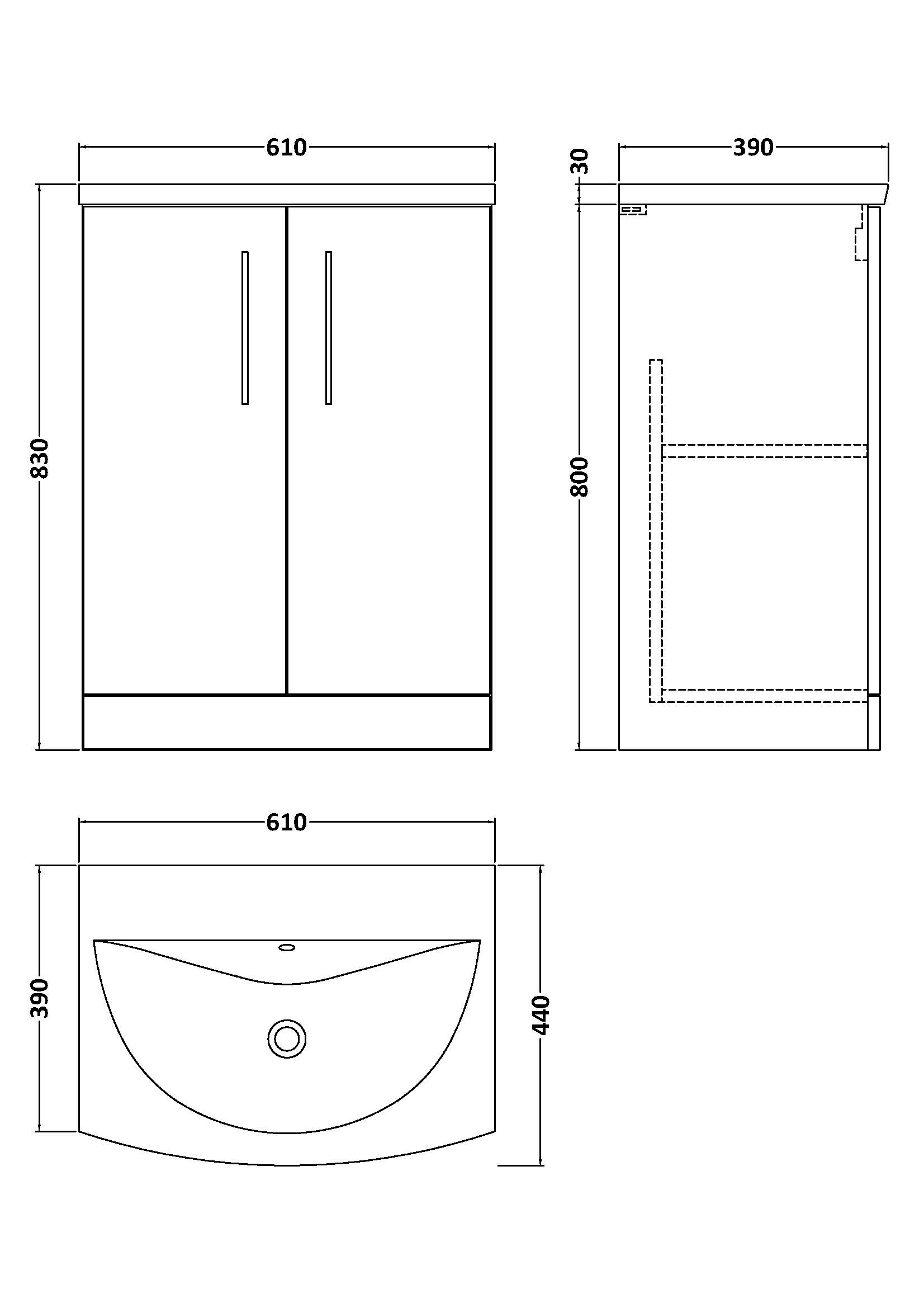 Arno 600mm Floor Standing 2-Door Vanity & Curved Basin