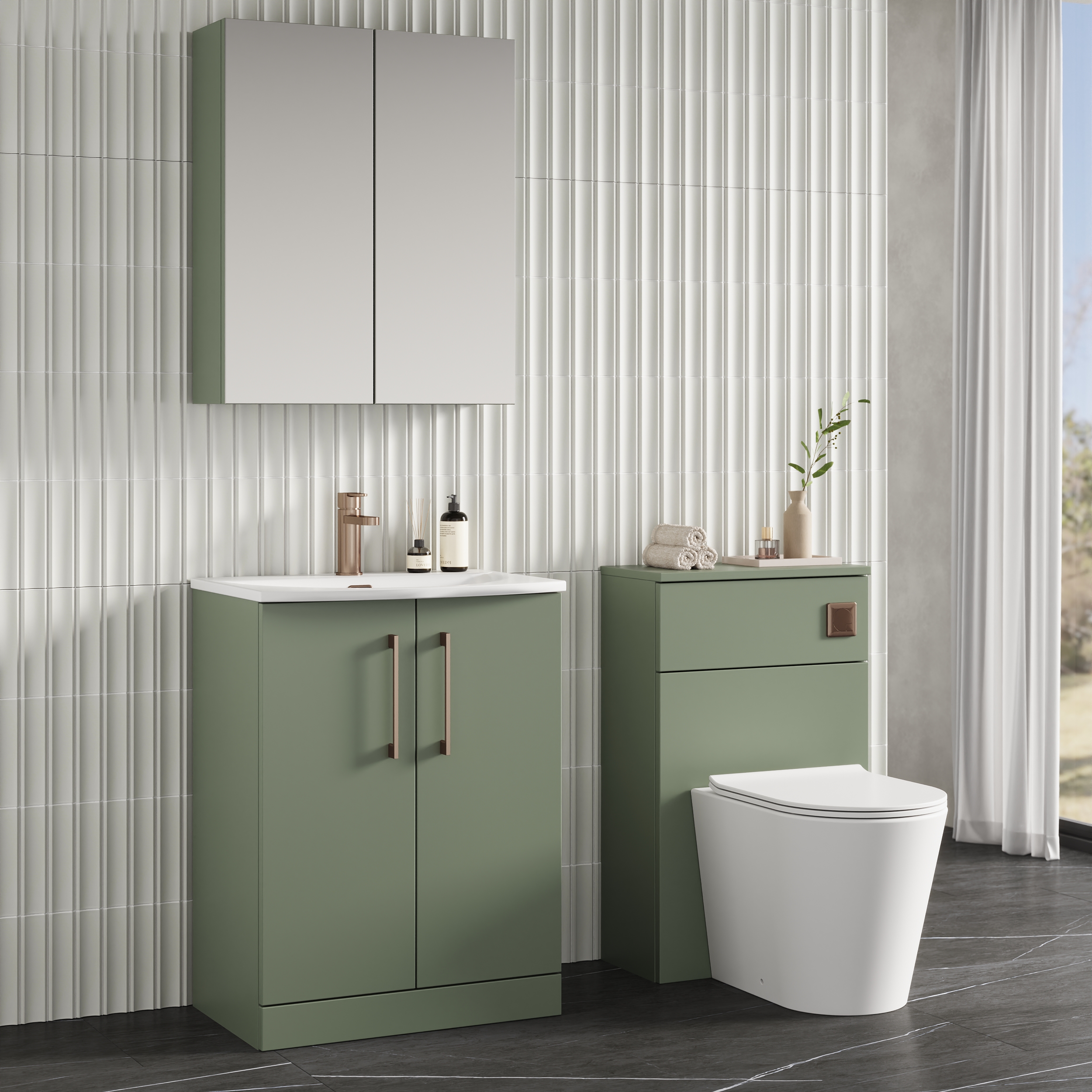 nuie Arno 600mm Floor Standing 2-Door Vanity & Curved Basin - Satin Green