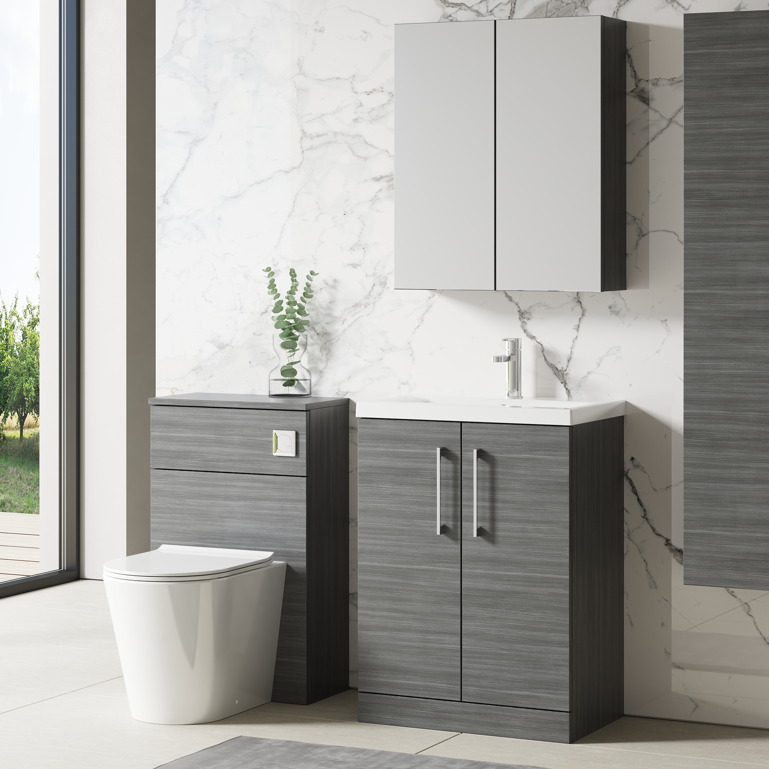 nuie Arno 600mm Floor Standing 2-Door Vanity & Mid-Edge Basin - Anthracite