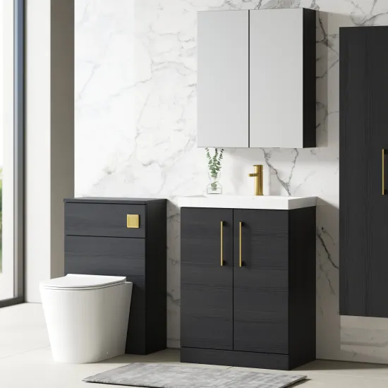 nuie Arno 600mm Floor Standing 2-Door Vanity & Thin-Edge Basin - Charcoal Black