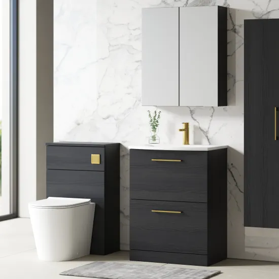 nuie Arno 600mm Floor Standing 2-Drawer Vanity & Curved Basin - Charcoal Black