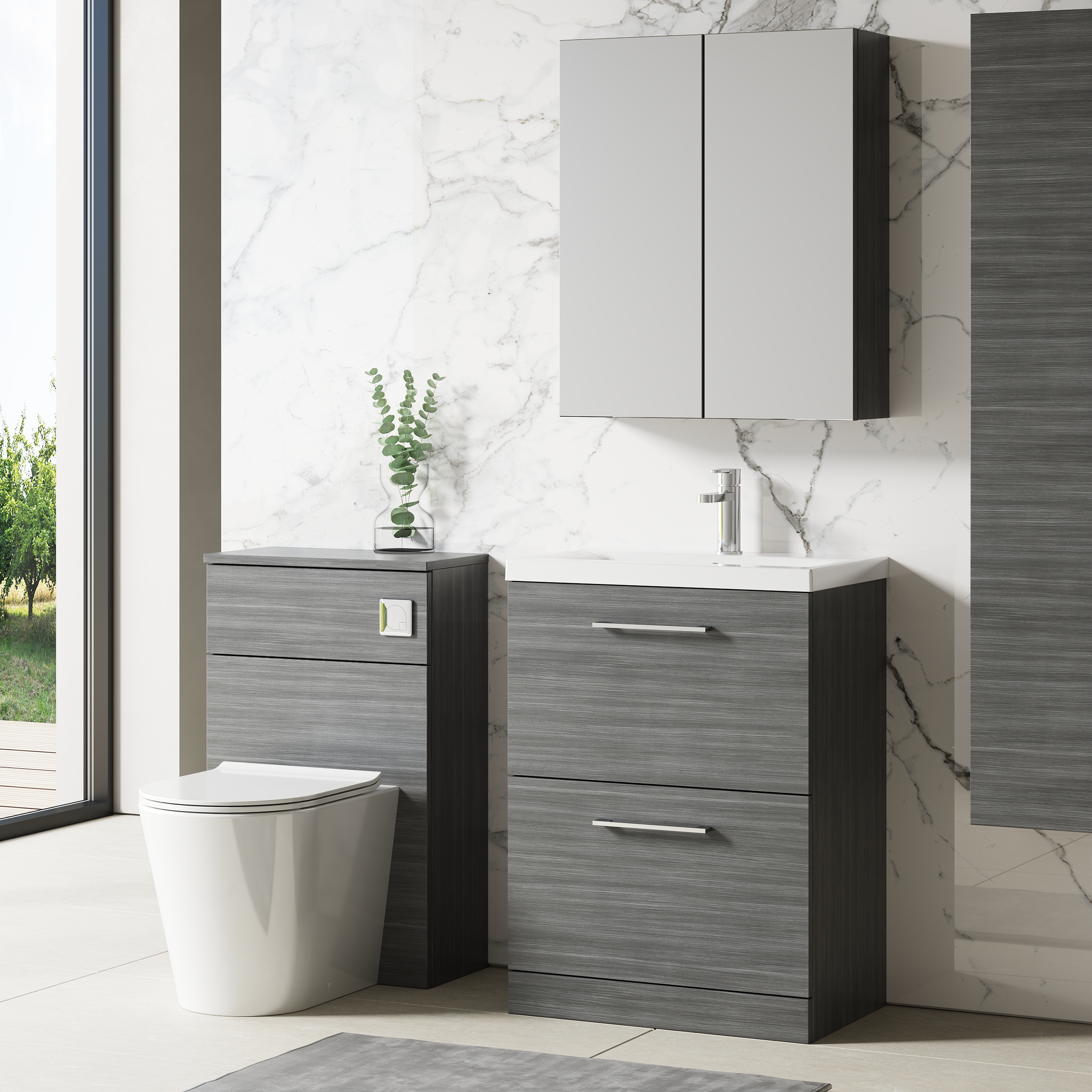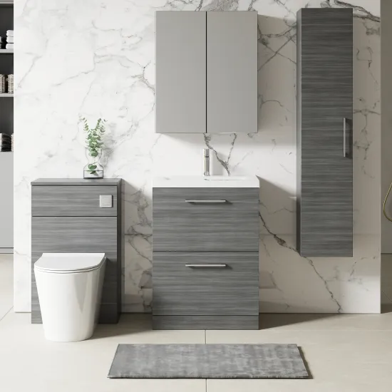 nuie Arno 600mm Floor Standing 2-Drawer Vanity & Mid-Edge Basin - Anthracite