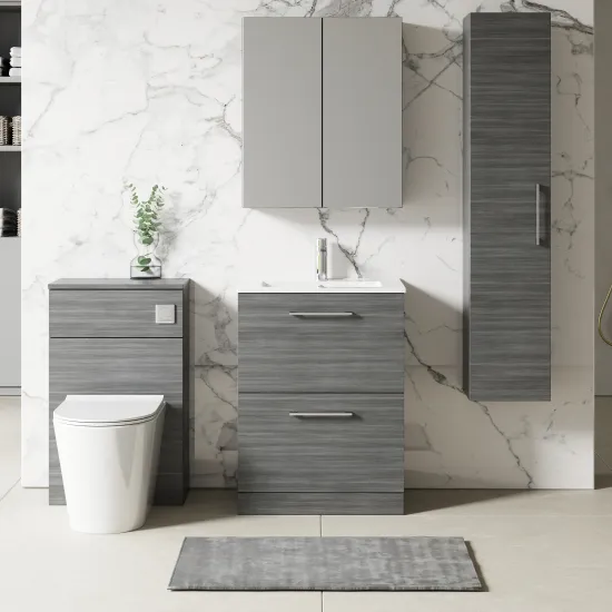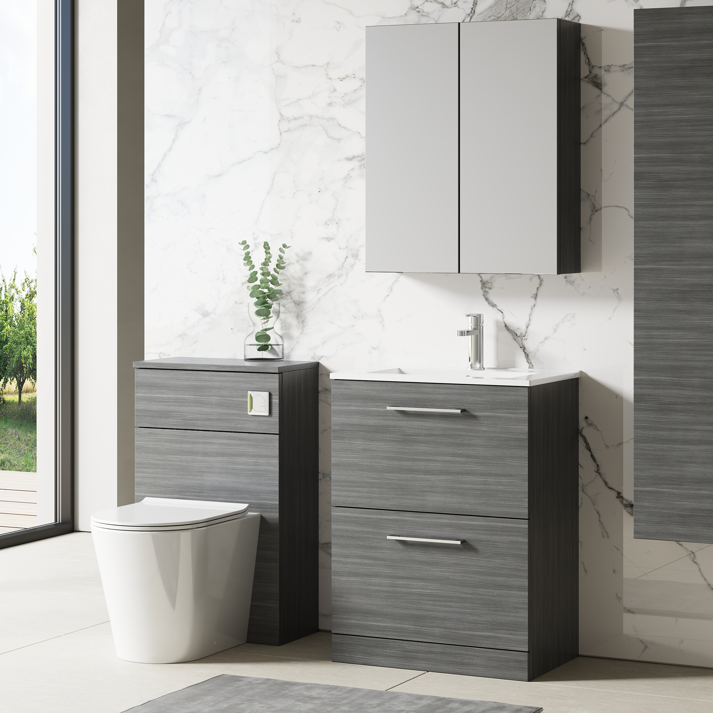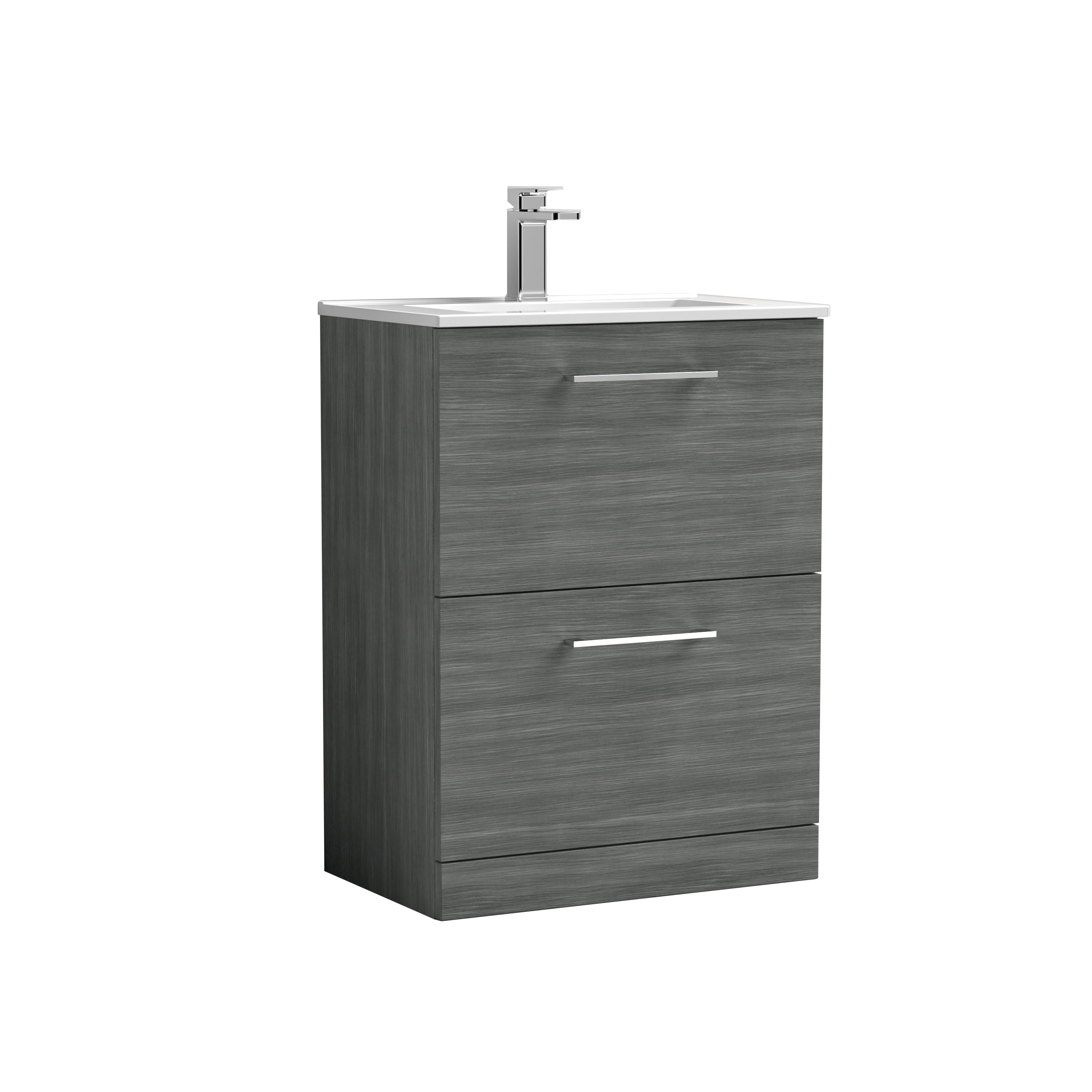 nuie Arno 600mm Floor Standing 2-Drawer Vanity & Minimalist Basin - Anthracite