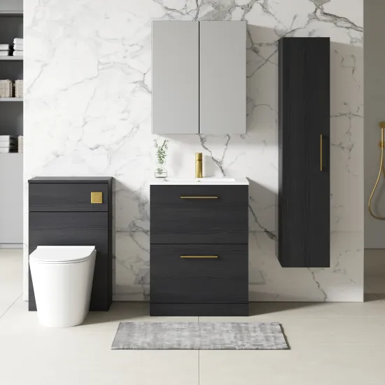 nuie Arno 600mm Floor Standing 2-Drawer Vanity & Minimalist Basin - Charcoal Black