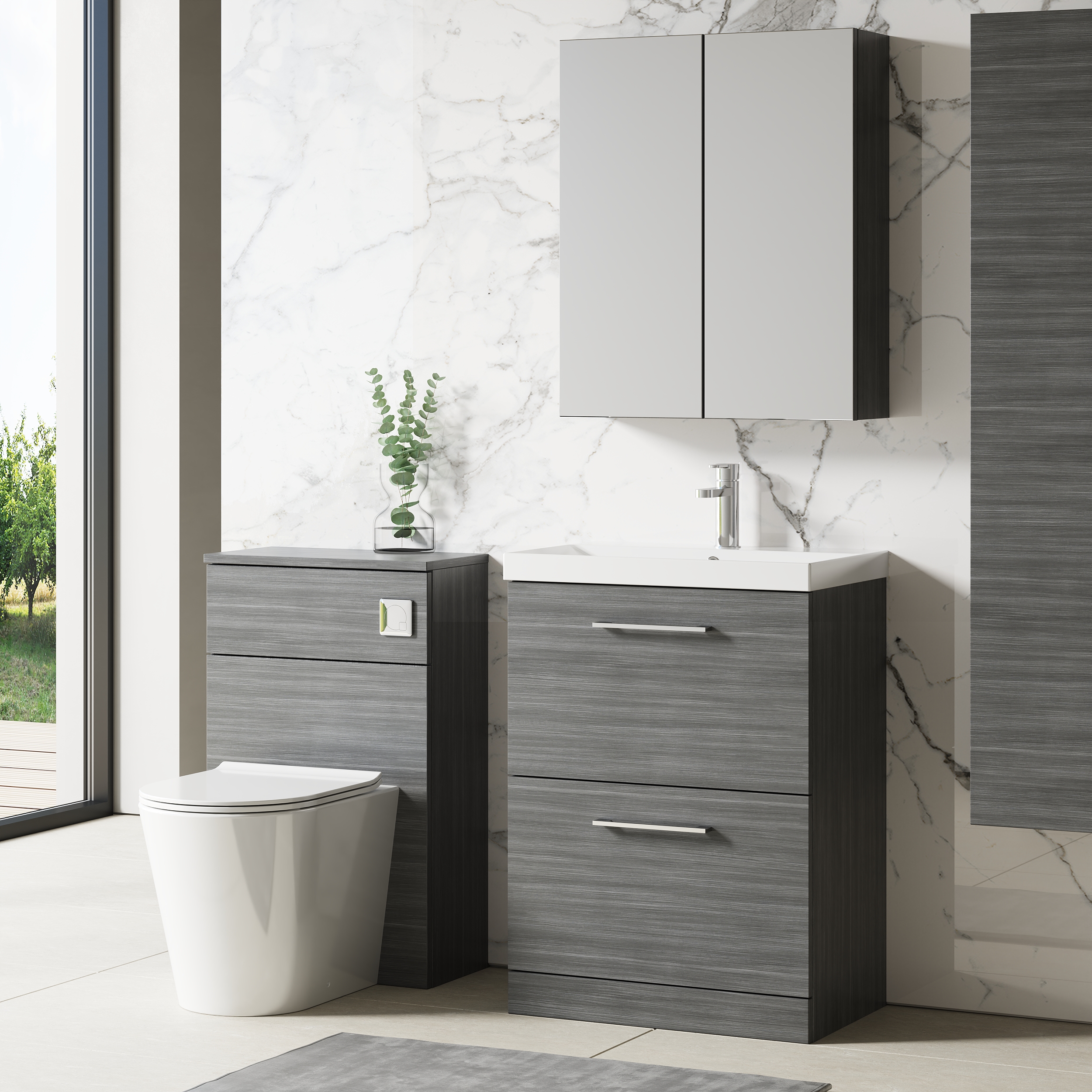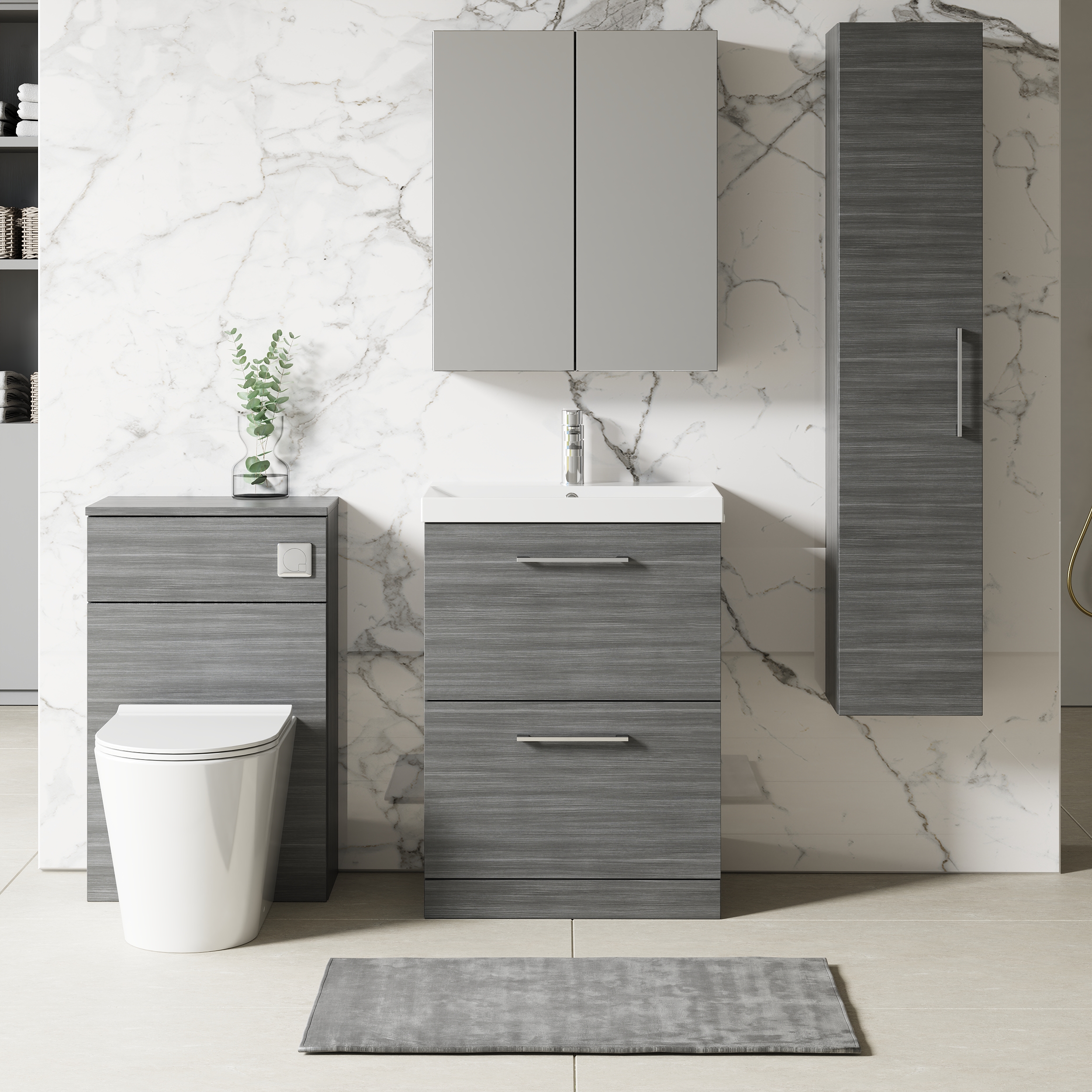 nuie Arno 600mm Floor Standing 2-Drawer Vanity & Thin-Edge Basin - Anthracite