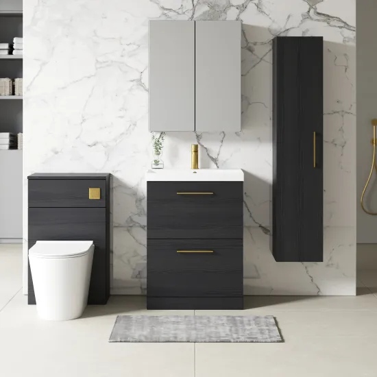 nuie Arno 600mm Floor Standing 2-Drawer Vanity & Thin-Edge Basin - Charcoal Black
