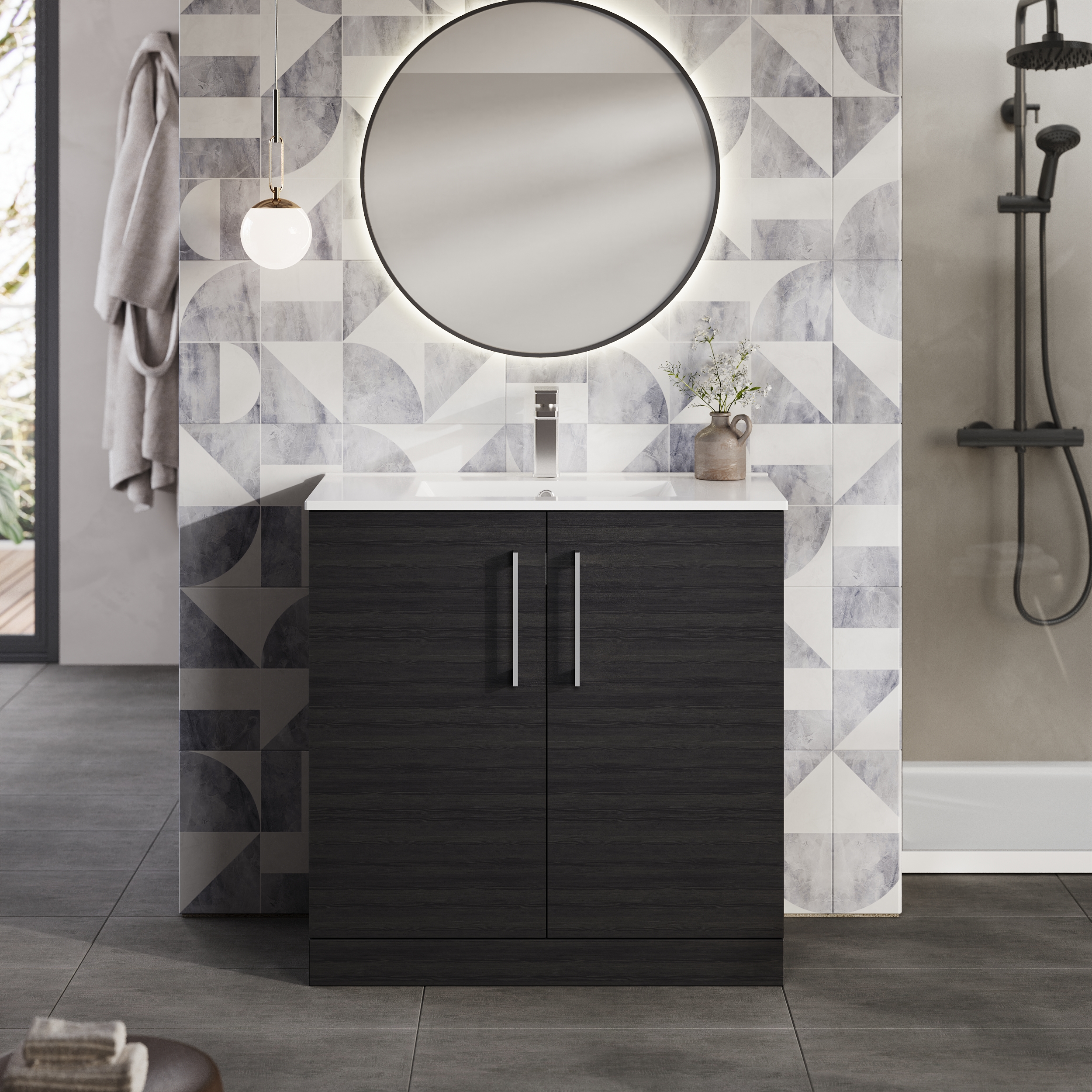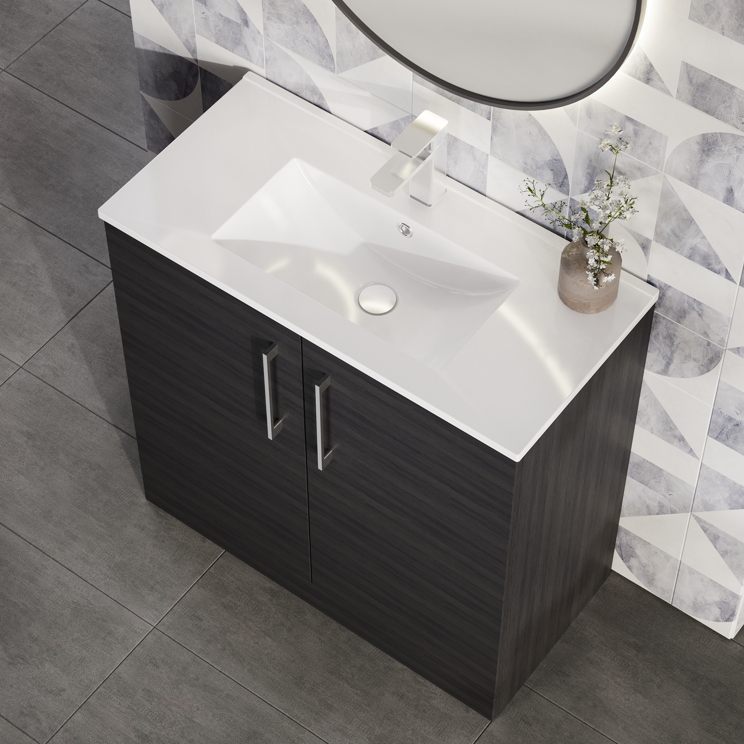 nuie Arno 800mm Floor Standing 2-Door Vanity & Minimalist Basin - Charcoal Black