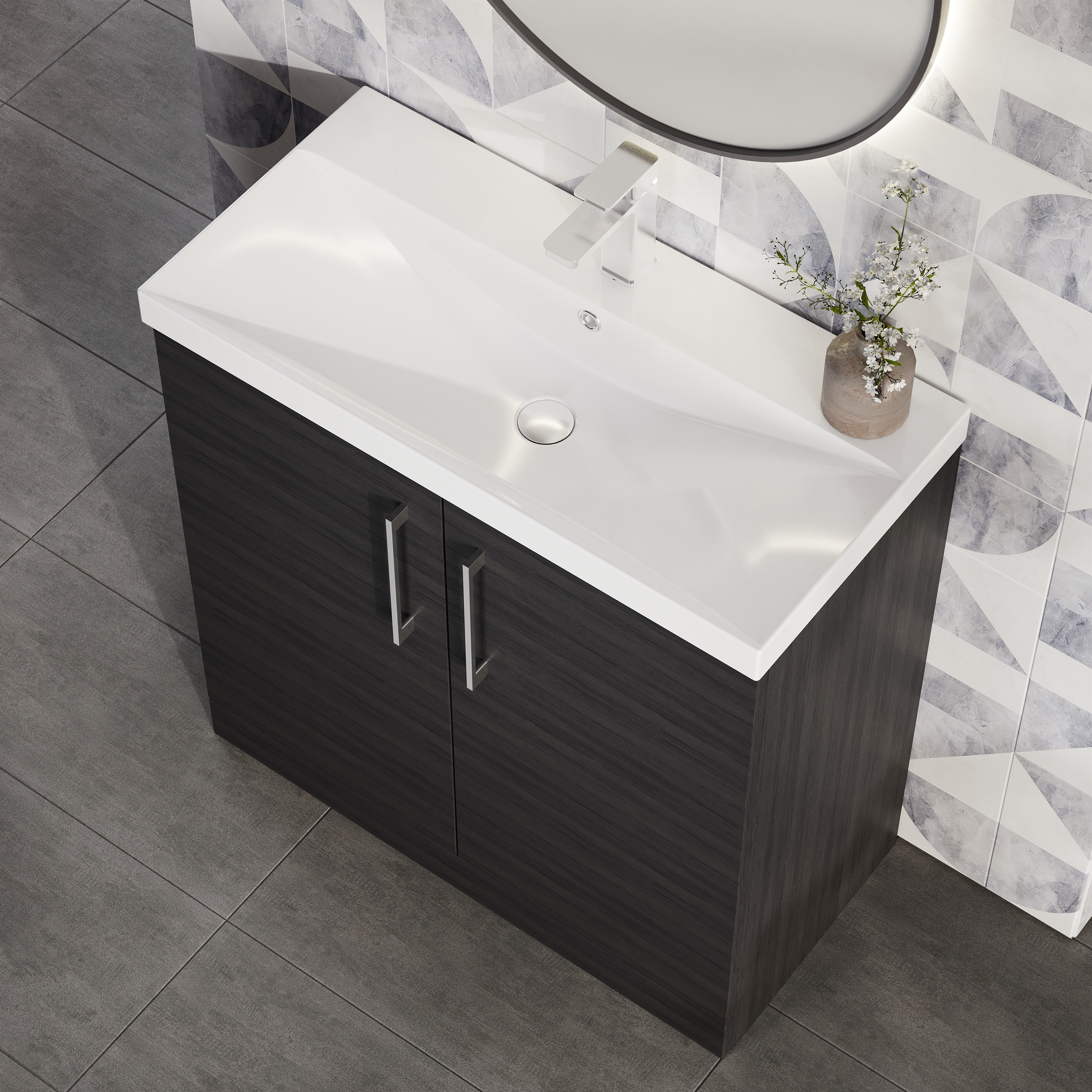 nuie Arno 800mm Floor Standing 2-Door Vanity & Thin-Edge Basin - Charcoal Black