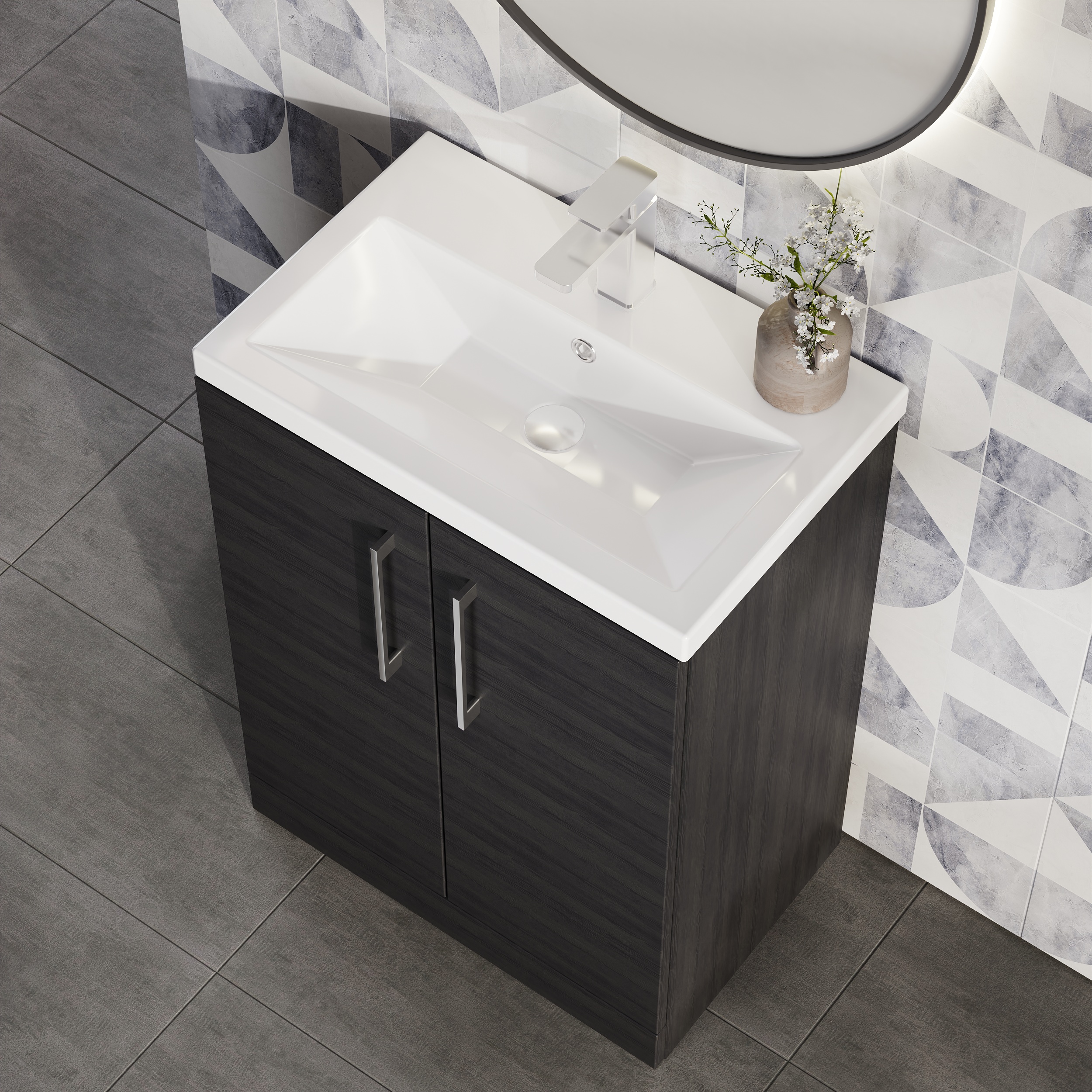 nuie Arno Compact 600mm Floor Standing 2-Door Vanity & Ceramic Basin - Charcoal Black