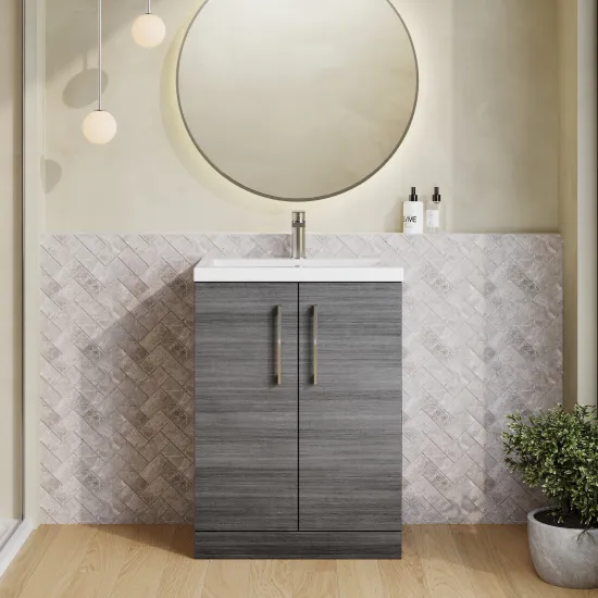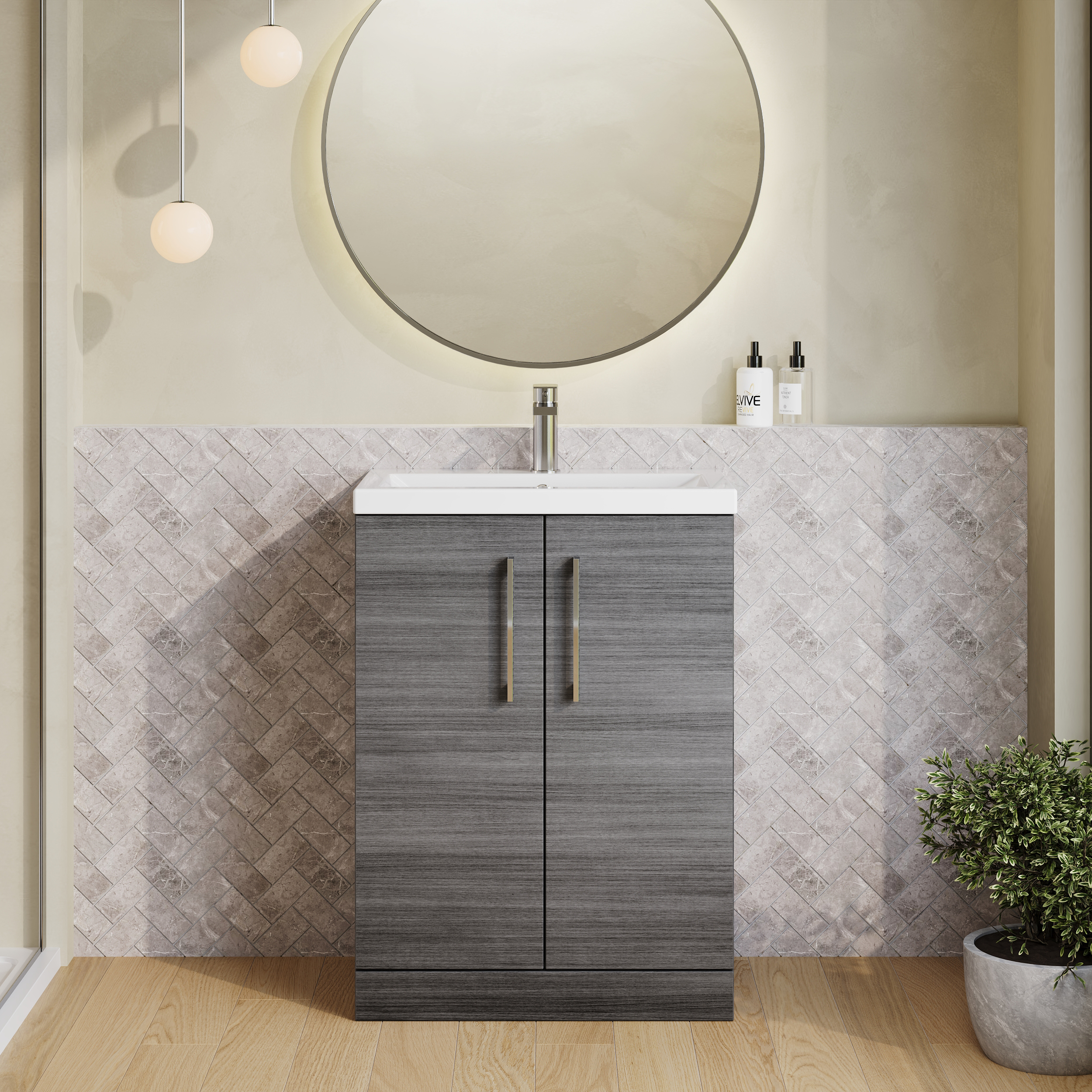nuie Arno Compact 600mm Floor Standing 2-Door Vanity & Ceramic Basin - Anthracite