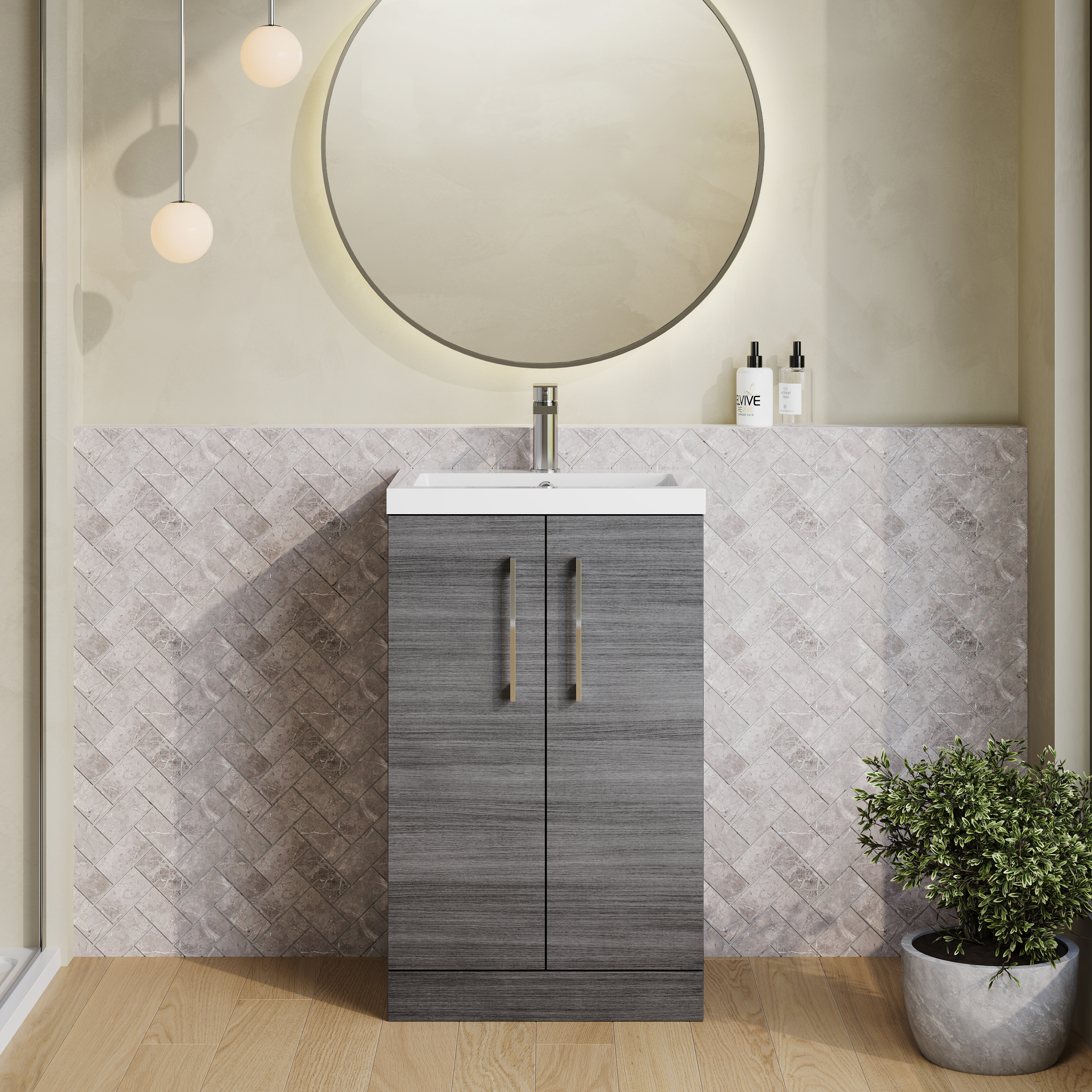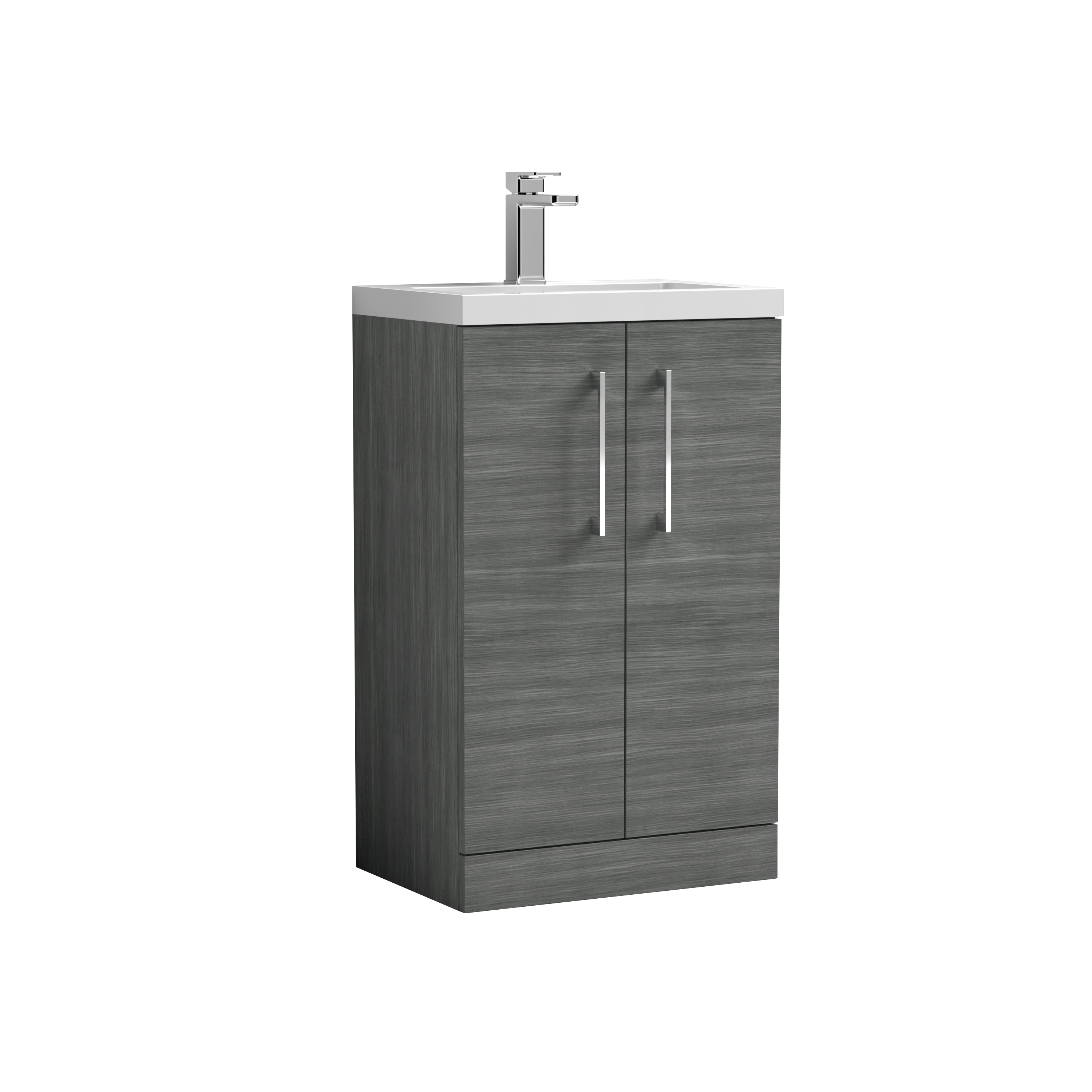 nuie Arno Compact 500mm Floor Standing 2-Door Vanity & Polymarble Basin - Anthracite