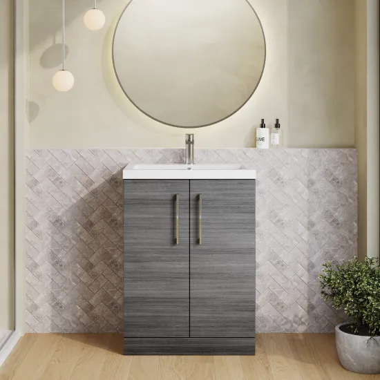 nuie Arno Compact 600mm Floor Standing 2-Door Vanity & Polymarble Basin - Anthracite