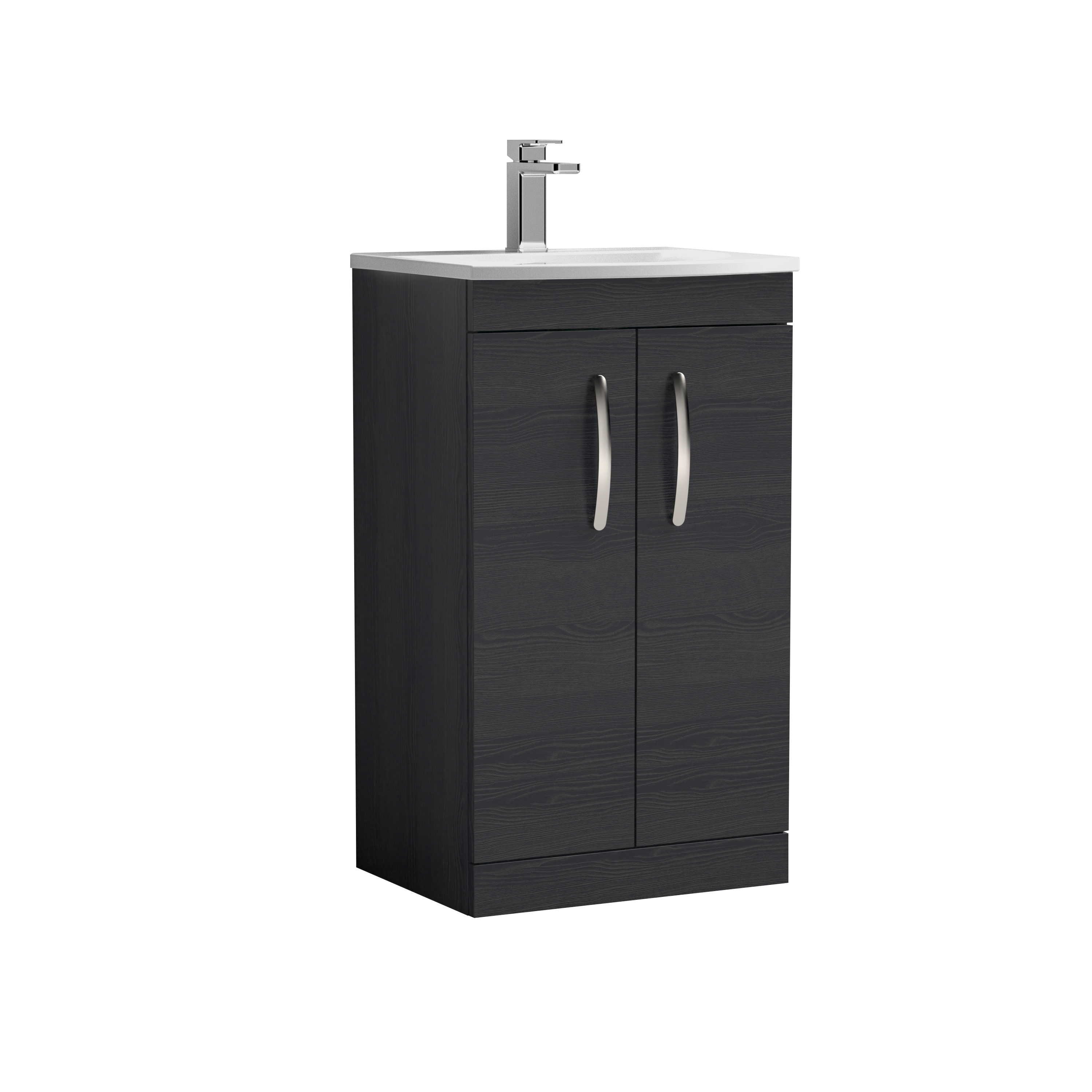nuie Athena Floor Standing 2 Door Vanity With Curved 1 Tap Hole Ceramic Basin 500mm - Hacienda Black
