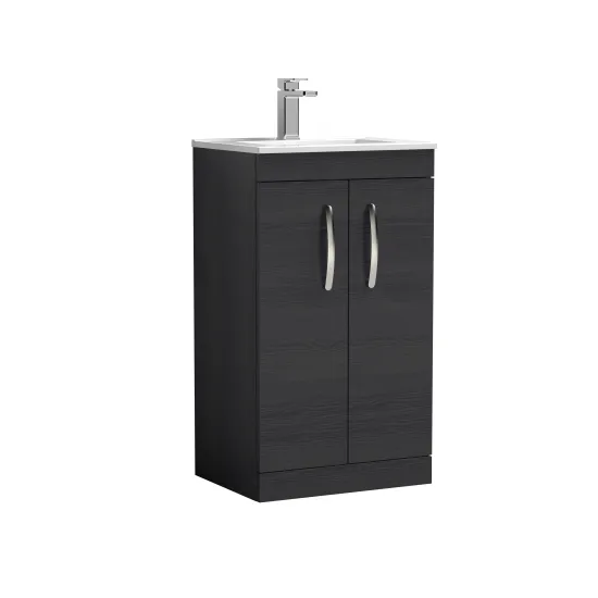 nuie Athena Floor Standing 2 Door Vanity With Minimalist 1 Tap Hole Ceramic Basin 500mm - Hacienda Black