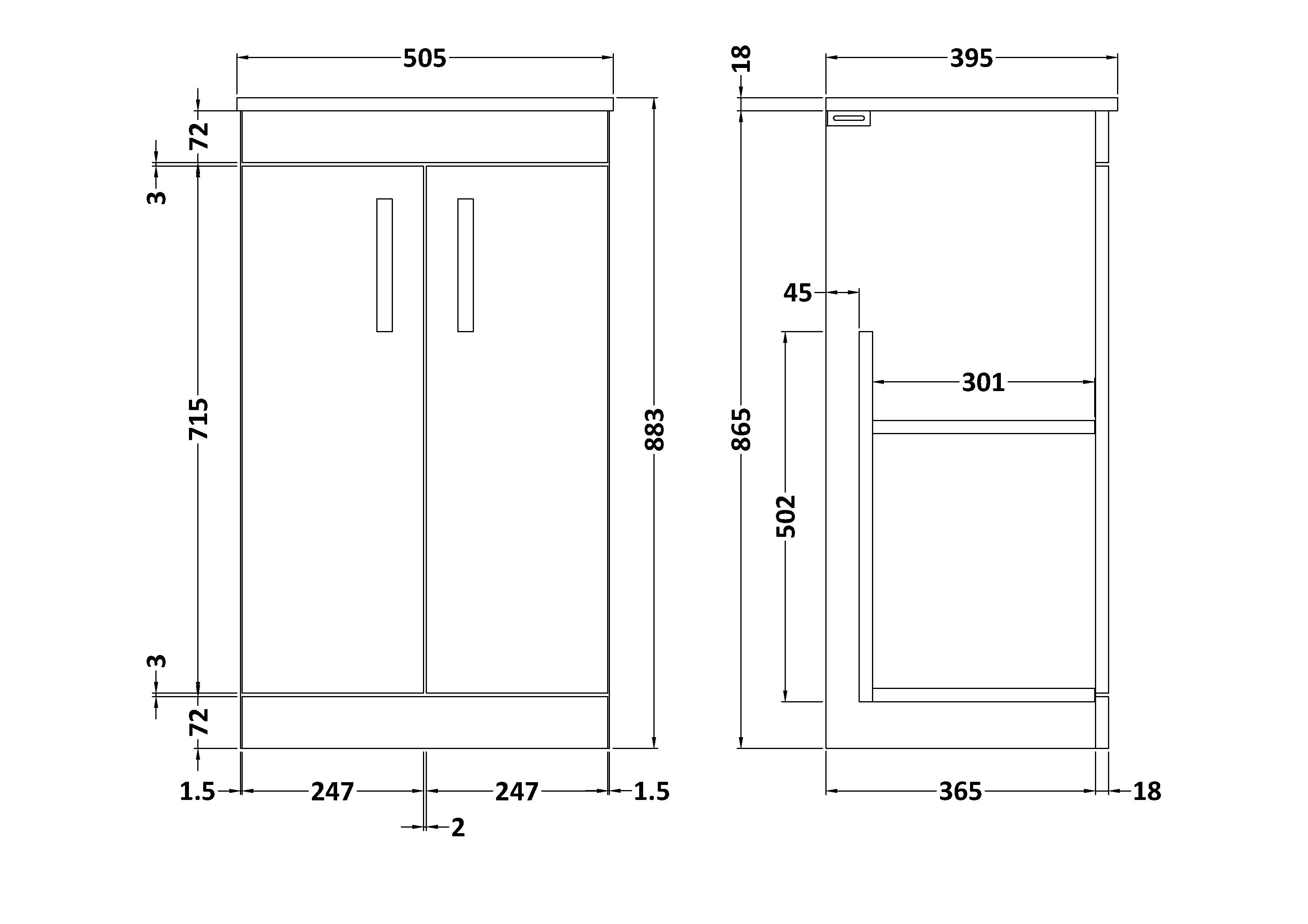 Athena Floor Standing 2 Door Vanity With Minimalist 1 Tap Hole Basin 500mm