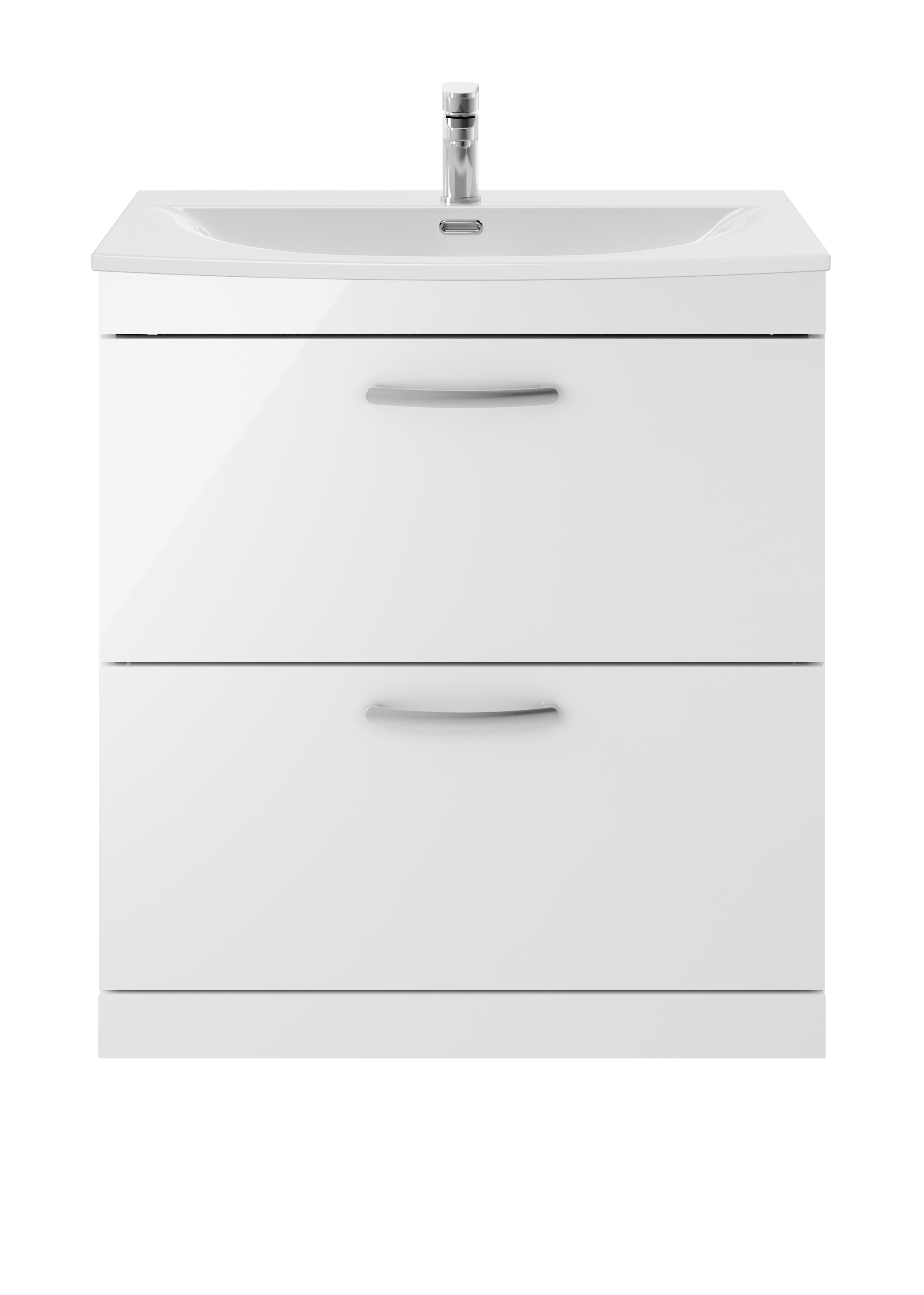 nuie Athena Floor Standing 2 Drawer Vanity With Curved 1 Tap Hole Ceramic Basin 800mm - Gloss White