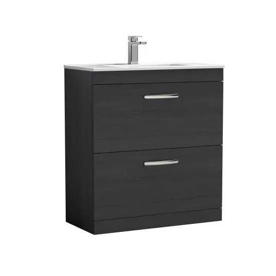 nuie Athena Floor Standing 2 Drawer Vanity With Minimalist 1 Tap Hole Ceramic Basin 800mm - Hacienda Black