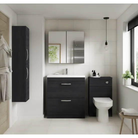 This striking Charcoal Black finish compliments any modern bathroom to create a designer look. This floor standing unit gives ample storage, perfect for a busy family bathroom. This unit has soft close drawers which limits the daily wear and tear and provides a quieter closing action. Colour co-ordinate your unit with a Charcoal Black WC unit. Supplied with high quality vitreous china basin.