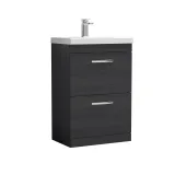 This unique anthracite woodgrain finish compliments any modern bathroom and creates a designer look. This floor standing unit gives ample storage, perfect for a busy family bathroom. This unit has soft close doors which limits the daily wear and tear and provides a quieter closing action. Colour co-ordinate your unit with a anthracite woodgrain WC unit. Supplied with high quality double polymarble basin.
