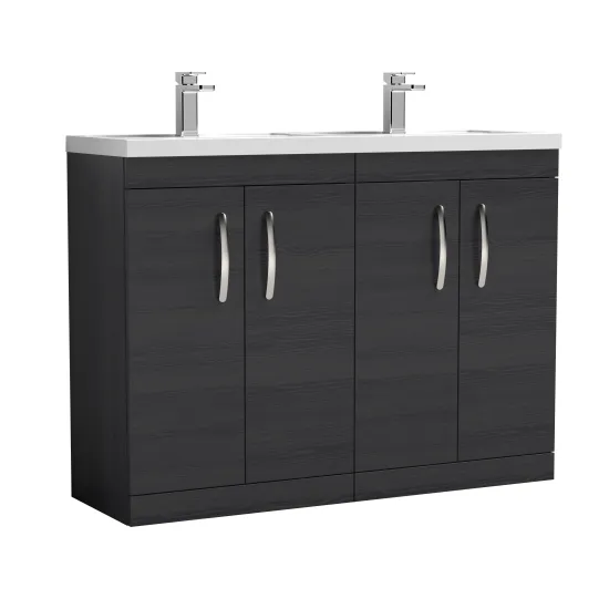 This stiking Charcoal Black finish adds impact and contast to any modern bathroom and creates a designer look. This floor standing unit gives ample storage, perfect for a busy family bathroom. This unit has soft close doors which limits the daily wear and tear and provides a quieter closing action. Colour co-ordinate your unit with a Charcoal Black WC unit. Supplied with high quality double polymarble basin.