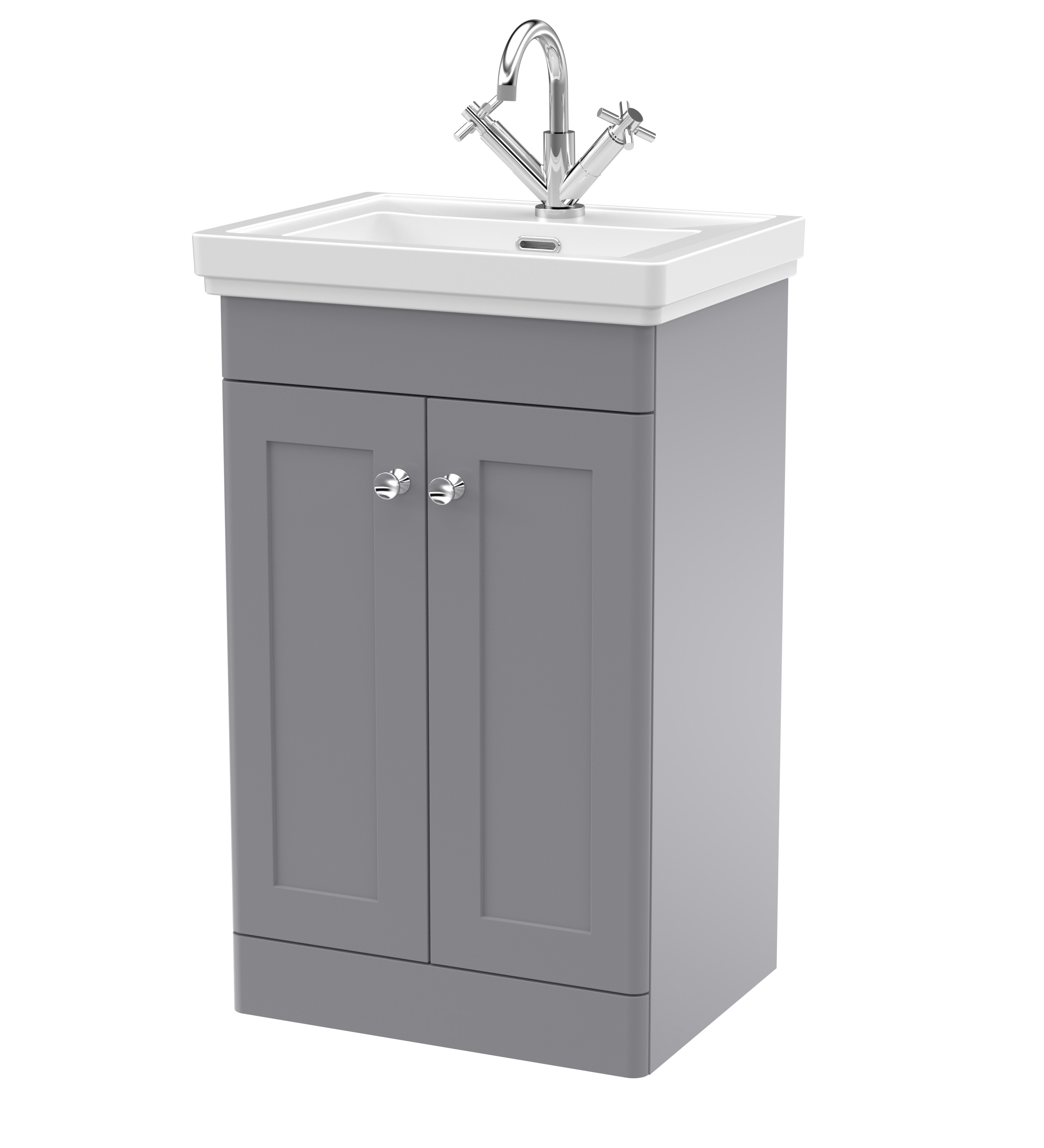 nuie Classique Floor Standing 2 Door Vanity Basin Unit & 1 Tap Hole Fireclay Basin, 500mm - Satin Grey