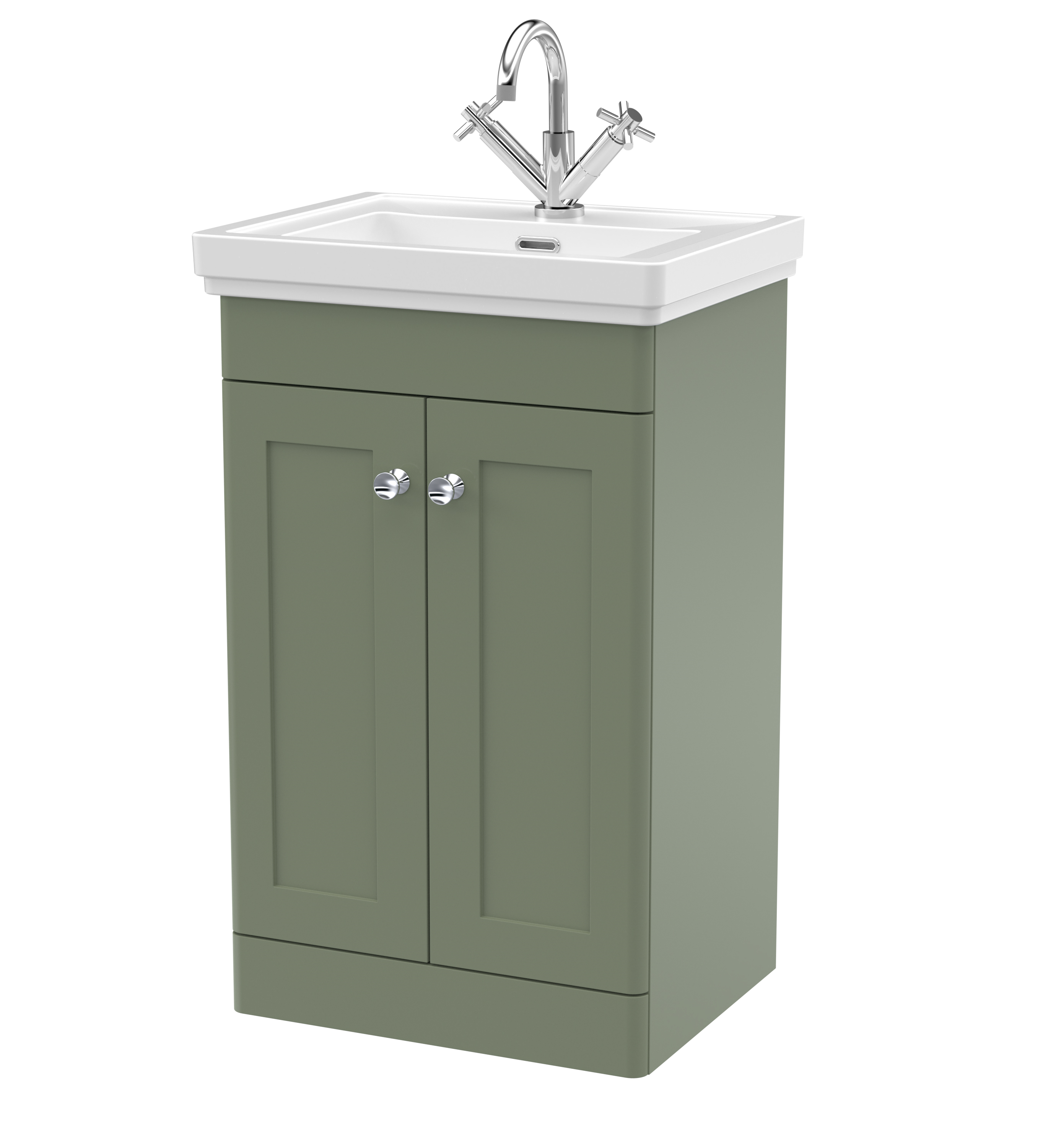 nuie Classique Floor Standing 2 Door Vanity Basin Unit & 1 Tap Hole Fireclay Basin, 500mm - Satin Green