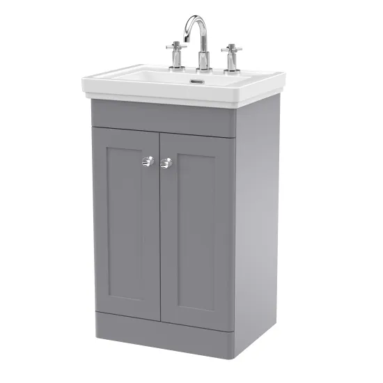 nuie Classique Floor Standing 2 Door Vanity Basin Unit & 3 Tap Hole Fireclay Basin, 500mm - Satin Grey