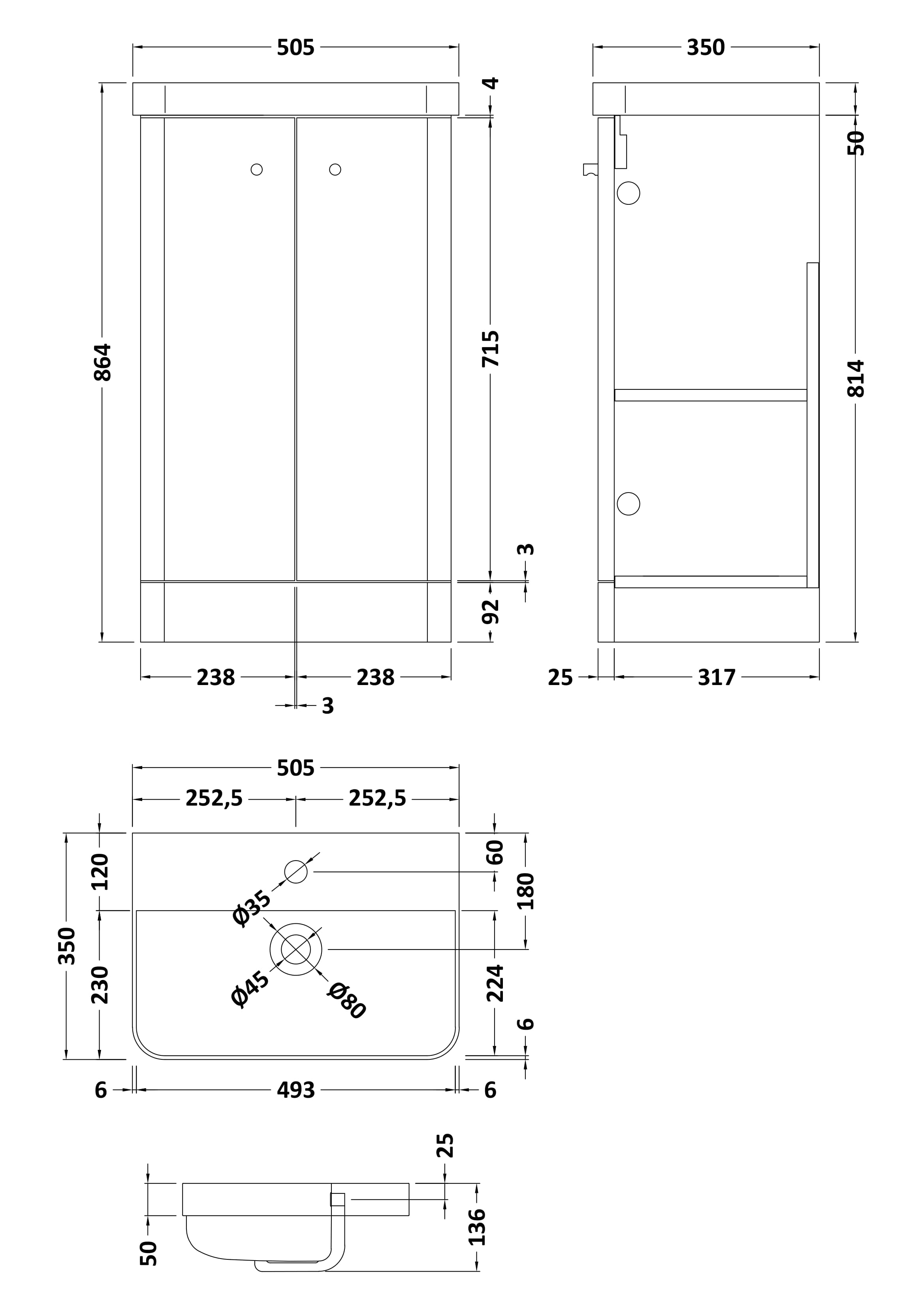 Core Floor Standing 2 Door Vanity Basin Unit & Ceramic Basin, 500mm