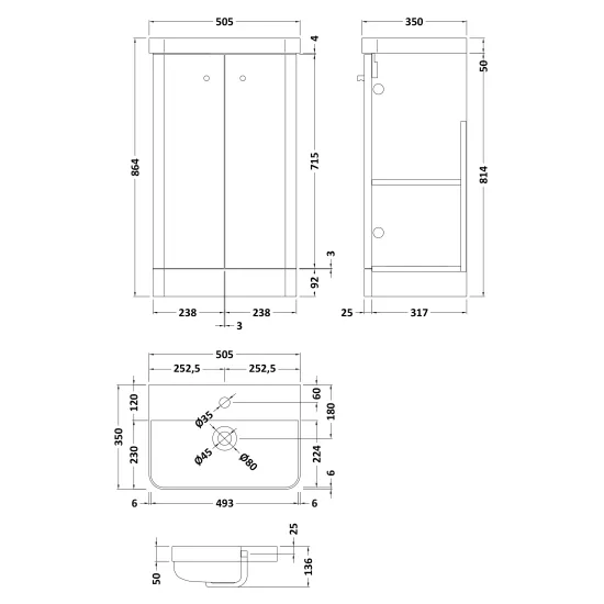 Contemporary floor standing design provides ample storage for all your bathroom toiletries and cleaning supplies. Available in 3 sleek colour ways. Soft close doors ensures peace ensues throughout your home. Supplied rigid for easy installation. Vitreous china basin pre-drilled with 1 tap hole.