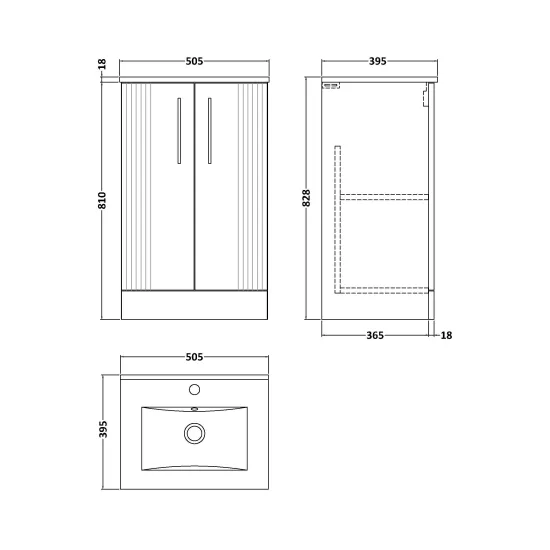 Nuie Deco 500mm Floor Standing 2 Door Vanity & Basin 2 - Satin White