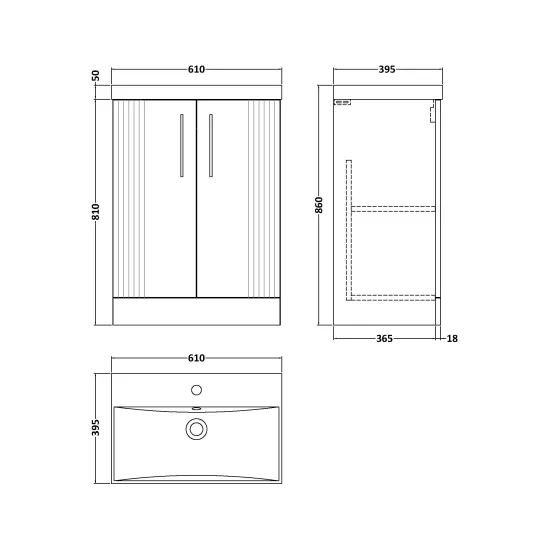 Deco 600mm Floor Standing 2-Door Vanity & Minimalist Basin