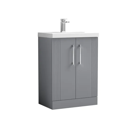 nuie Deco 600mm Floor Standing 2-Door Vanity & Thin-Edge Basin - Satin Grey
