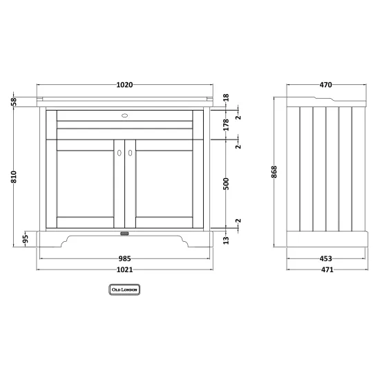 Old London Floor Standing 2 Door Vanity Unit with 1 Tap Hole Ceramic Basin 1000mm - Storm Grey