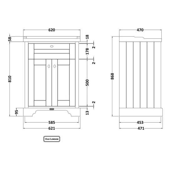 Old London Floor Standing 2 Door Vanity Unit with 1 Tap Hole Ceramic Basin 600mm - Hunter Green