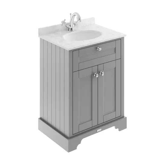 Old London Floor Standing 2 Door Vanity Unit with 1 Tap Hole Grey Marble Top 600mm - Storm Grey
