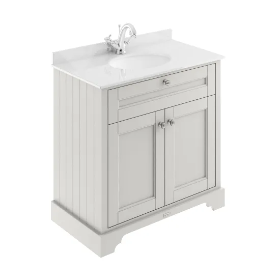 Old London Floor Standing 2 Door Vanity Unit with 1 Tap Hole White Marble Top 800mm - Timeless Sand