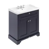 Old London Floor Standing 2 Door Vanity Unit with 3 Tap Hole Black Marble Top 800mm - Twilight Blue