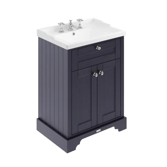 Old London Floor Standing 2 Door Vanity Unit with 3 Tap Hole Ceramic Basin 600mm - Twilight Blue
