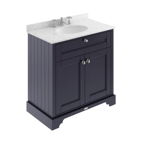 Old London Floor Standing 2 Door Vanity Unit with 3 Tap Hole Grey Marble Top 800mm - Twilight Blue